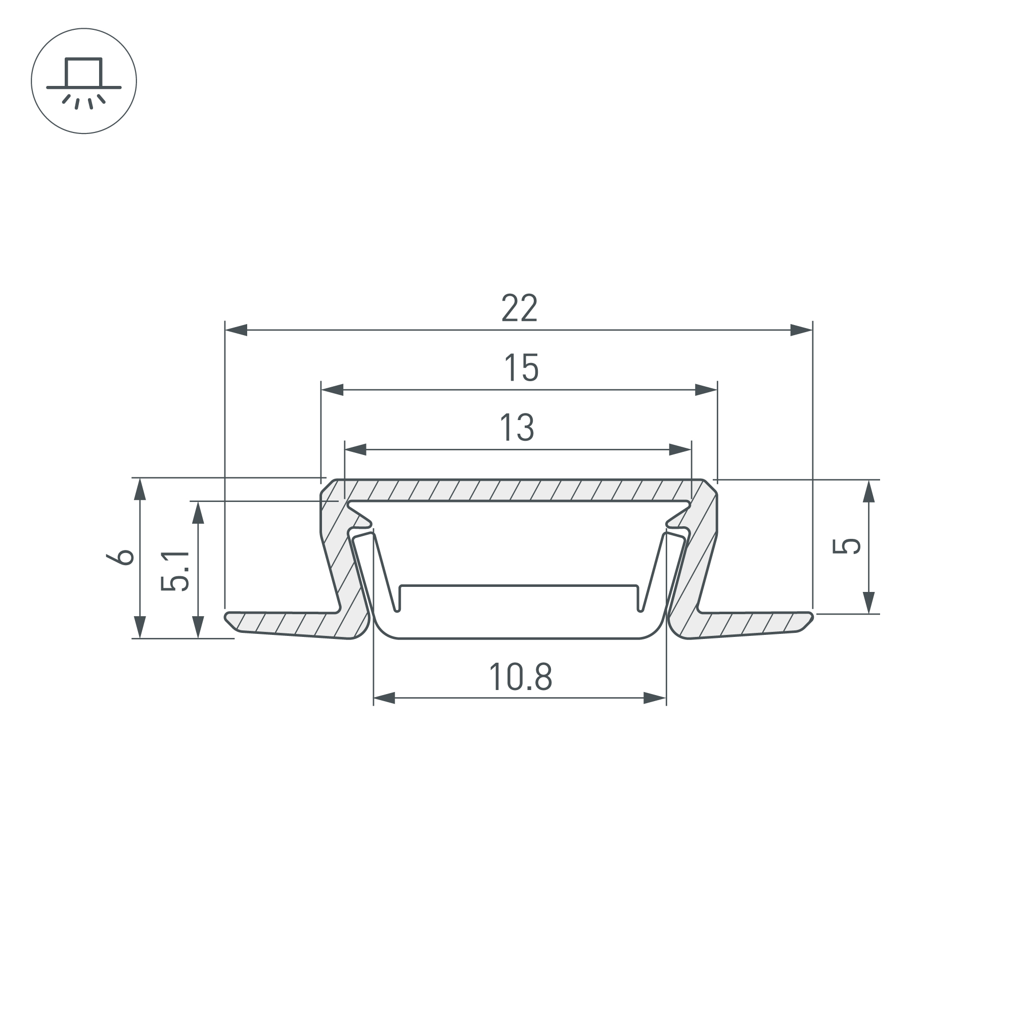 Встраиваемый профиль черного цвета с накладным фланцем из анодированного алюминия для контурной подсветки. Габаритные размеры профиля составляют 3000 мм в длину, 22 мм в ширину и 6 мм в высоту. Площадка для установки светодиодных лент позволяет использовать ленту шириной до 10,8 мм и мощностью до 15 Вт/м. Это обеспечивает гибкость в выборе светодиодных лент и создает потрясающие световые решения. Экраны, заглушки и другие аксессуары не включены в комплект и приобретаются отдельно. Цена указана за 1 метр профиля. Отличное решение для создания современных световых проектов.