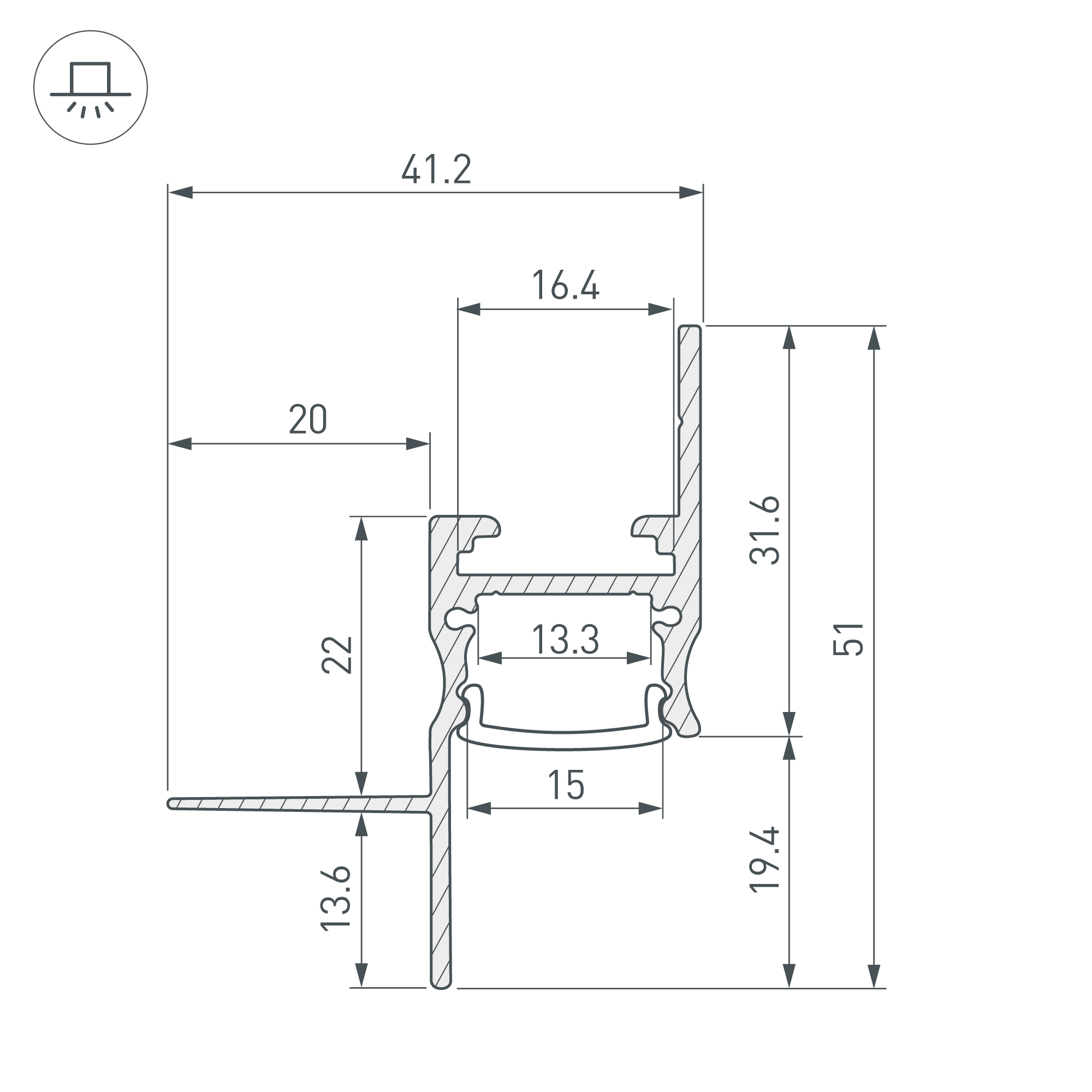 Встраиваемый алюминиевый профиль черного цвета со скрытым фланцем устанавливается в потолки и потолочные ниши из гипсокартона, образуя теневой зазор между потолком и стеной. Такое решение создает визуальный эффект потолка, парящего в воздухе с мягким свечением по периметру комнаты. Габаритные размеры профиля составляют 2000 мм в длину, 41,2 мм в ширину и 51 мм в высоту. Площадка для установки светодиодных лент позволяет использовать ленту шириной до 13,3 мм и мощностью до 33 Вт/м. Это обеспечивает гибкость в выборе светодиодных лент и создает потрясающие световые решения. Экраны, заглушки и другие аксессуары не включены в комплект и приобретаются отдельно. Цена указана за 1 метр профиля. Отличное решение для создания современных световых проектов.