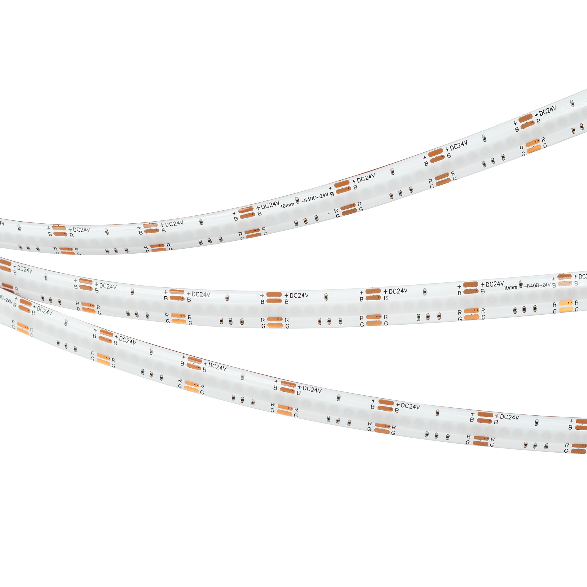 Мультицветная светодиодная герметичная лента сплошного свечения COB, серии X840, IP65, ширина 10 мм, мощностью 16 Вт/м. Светодиоды CSP, 840 шт/м, цвет свечения RGB. Эффект сплошной линии света создается без применения рассеивающих экранов. Предназначена для подсветки рекламных конструкций и витрин. Декоративная цветная подсветка ниш, элементов декора. Оформление помещений клубов, залов, ресторанов. Применяется во влажных помещениях. Обязательна установка на профиль.