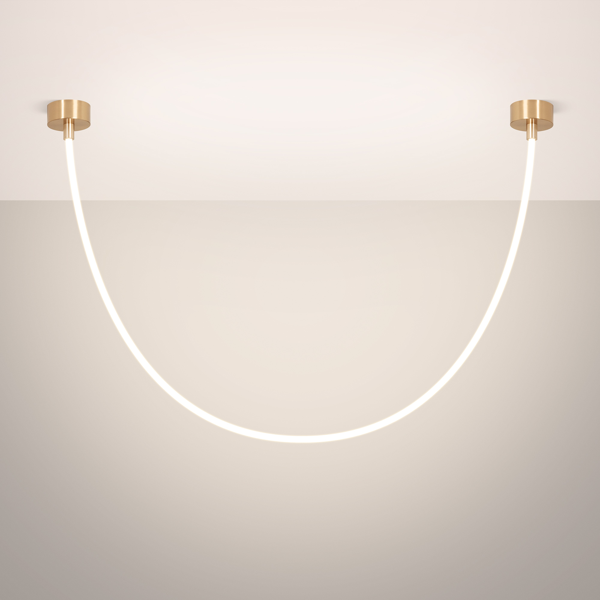 Подвесной светильник. Мощность 36 Вт, св. поток 2080 лм, 57 лм/Вт, тёплый 3000 K, CRI>90, угол 360°, напряжение питания 230 В. Золотой круглый корпус из стали, силиконовая герметичная лента, степень защиты IP20. Размер: общая высота чаши 85 мм, высота чаши без вывода под неон 50 мм, диаметр вывода под неон 35 мм, диаметр чаши 130 мм, диаметр силиконовой герметичной ленты 18 мм, длина силиконовой герметичной ленты 2500 мм. Монтаж накладной. Блок питания 24 В, 1880 мА, пульсация <5%.