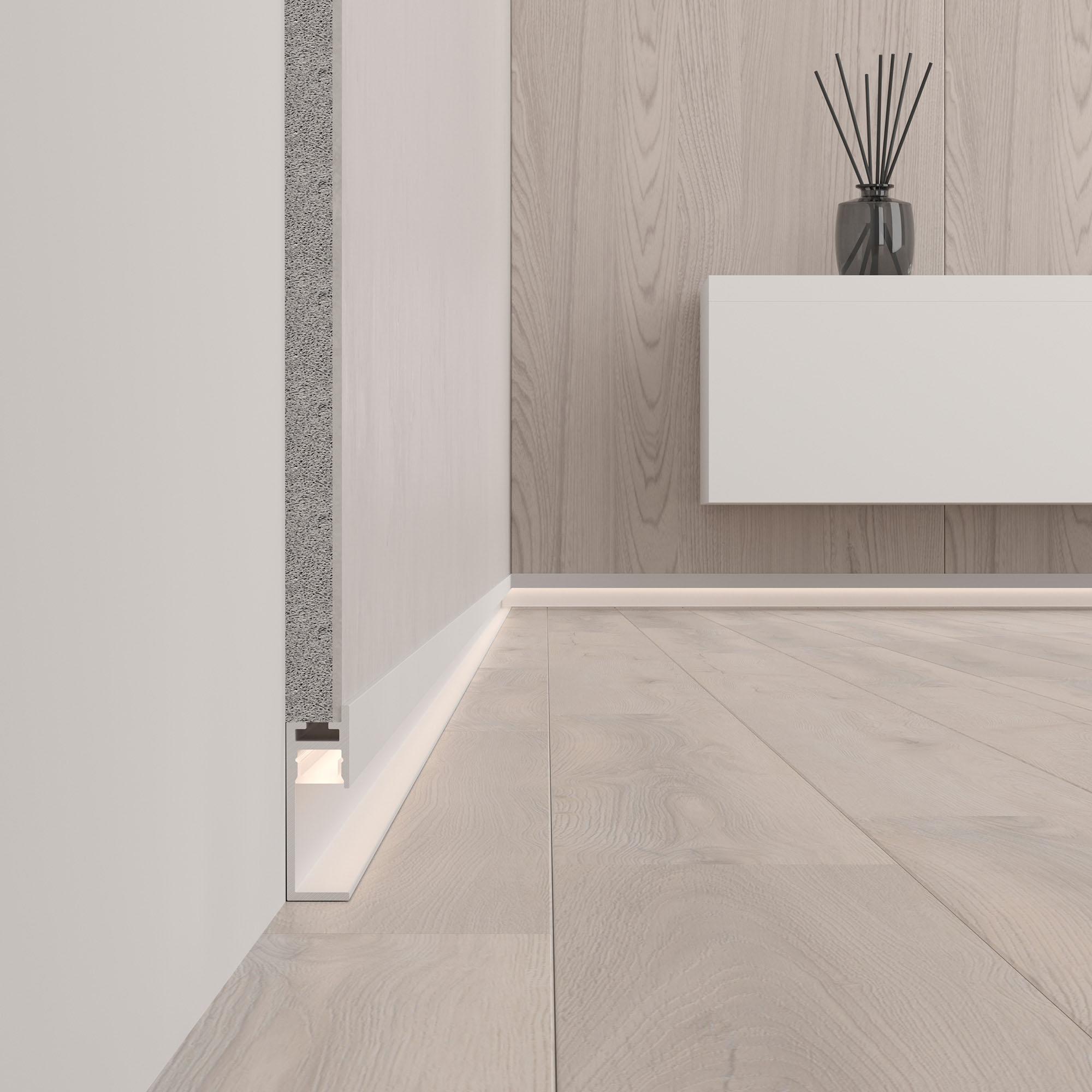 Встраиваемый алюминиевый профиль-плинтус с накладным фланцем белого цвета для создания эффекта парящей стены. Габаритные размеры профиля составляют 2000 мм в длину, 11,2 мм в ширину и 34,4 мм в высоту. Площадка для установки светодиодных лент позволяет использовать ленту шириной до 8 мм и мощностью до 18 Вт/м. Это обеспечивает гибкость в выборе светодиодных лент и создает потрясающие световые решения. Экран, заглушки и другие аксессуары не включены в комплект и приобретаются отдельно. Для данной модели профиля представлено два вида экрана: силиконовый экран W10-5000 SILICONE 043661 (совместим с заглушками PLINTUS-FANTOM-BENT 043898 и 043664) и пластиковый экран W10-2000 OPAL 043606 (совместим с заглушками PLINTUS-FANTOM 043607 и 043906). Цена указана за 1 метр профиля. Отличное решение для создания современных световых проектов.