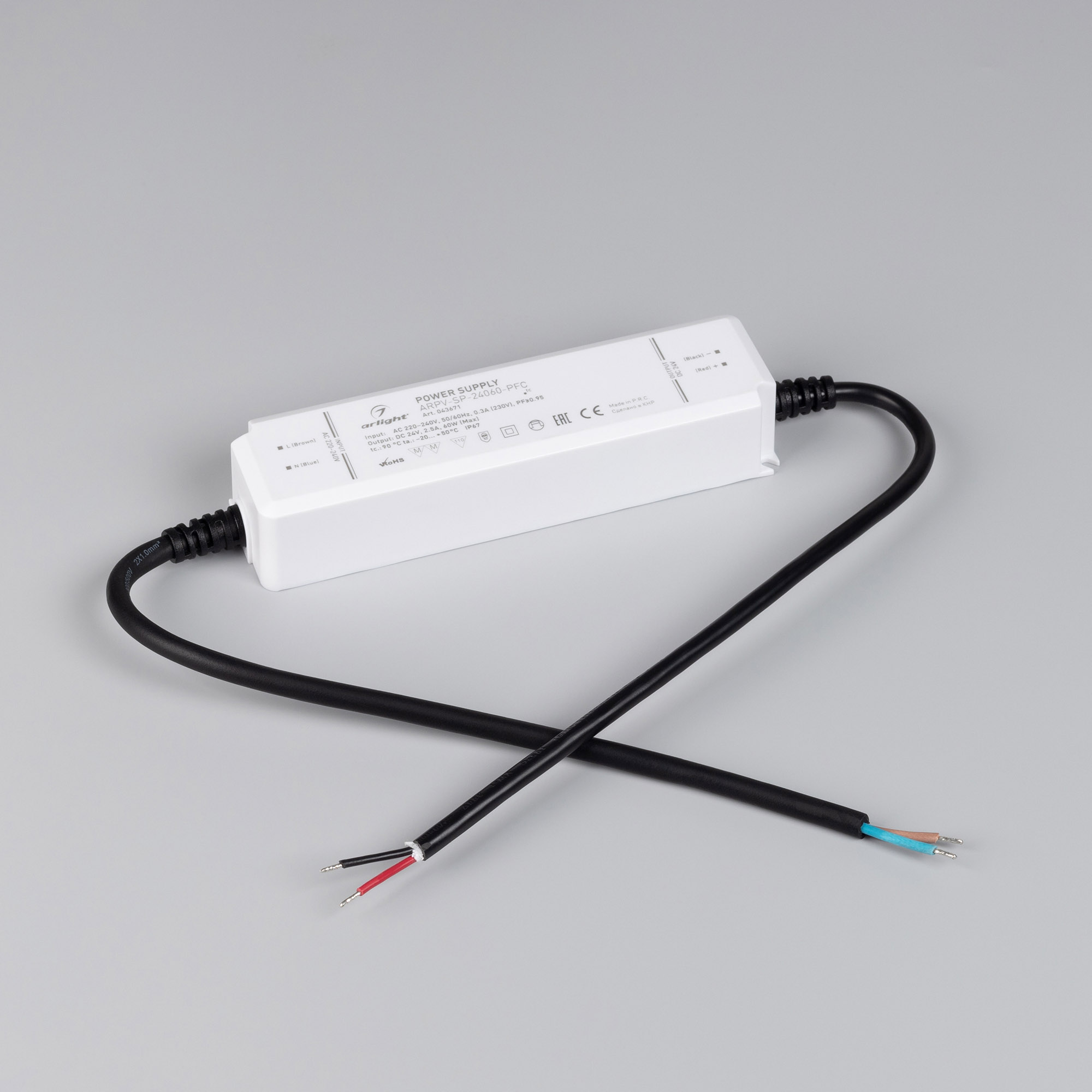 Блок питания ARPV-SP-24060-PFC (24V, 2.5A, 60W) (Arlight, IP67 Пластик, 5 лет)