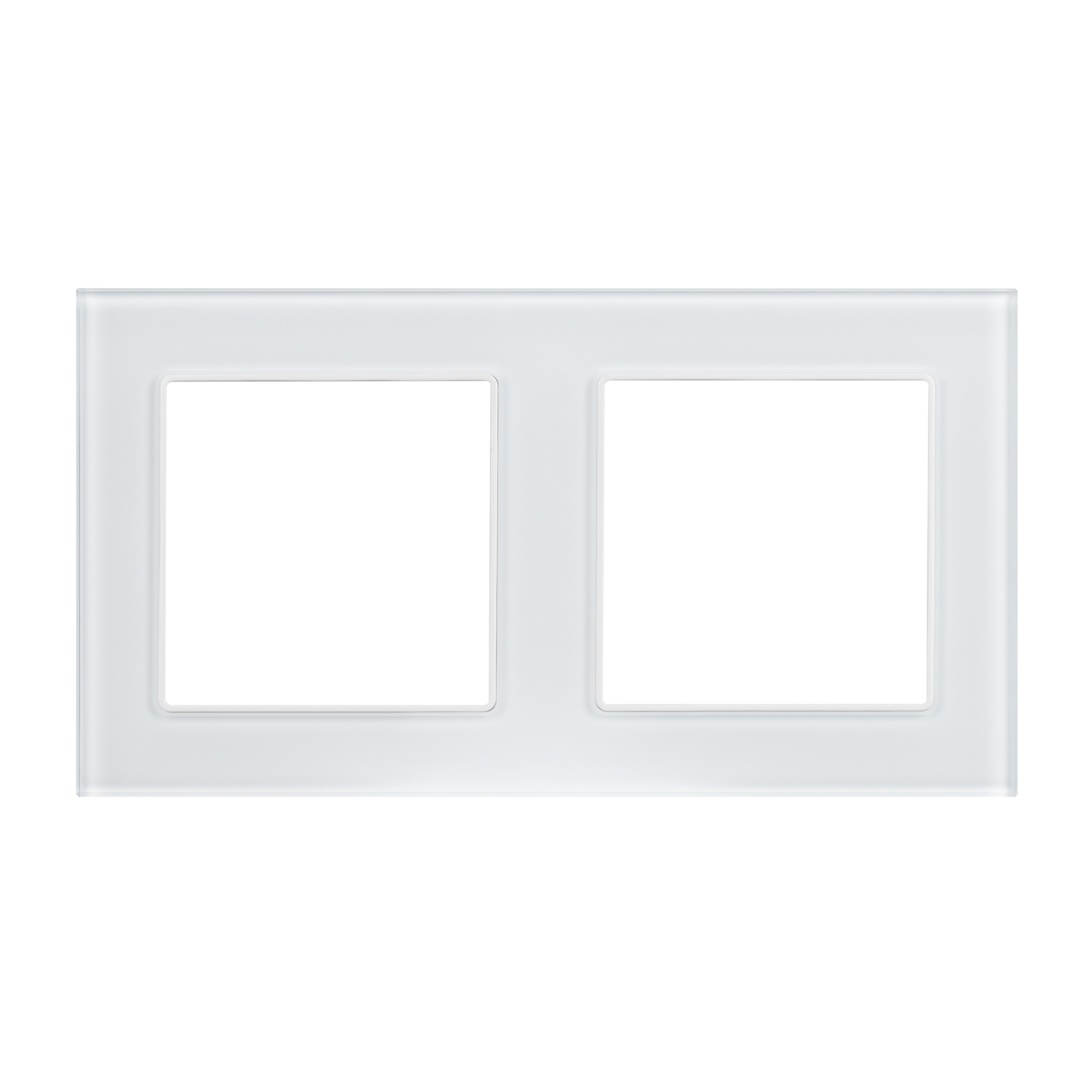 Рамка стеклянная на 2 поста, под встраиваемый механизм (квадрат). Цвет - белый. Ориентации монтажа - горизонтальная.