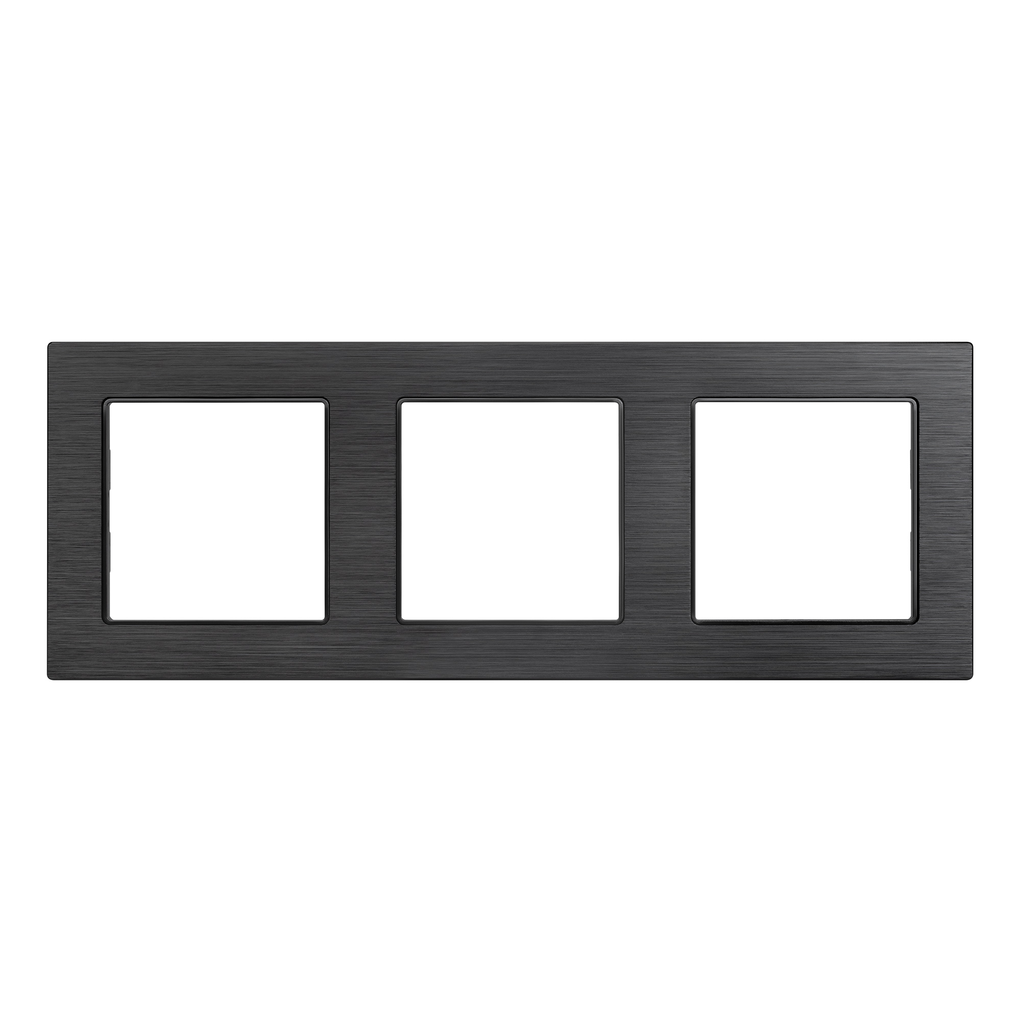 Рамка алюминиевая на 3 пост, под встраиваемый механизм (квадрат). Цвет - черный. Ориентации монтажа - горизонтальная. Габаритные размеры: длина 224 мм, ширина 82 мм, высота 10 мм. Гарантийный срок 12 мес.