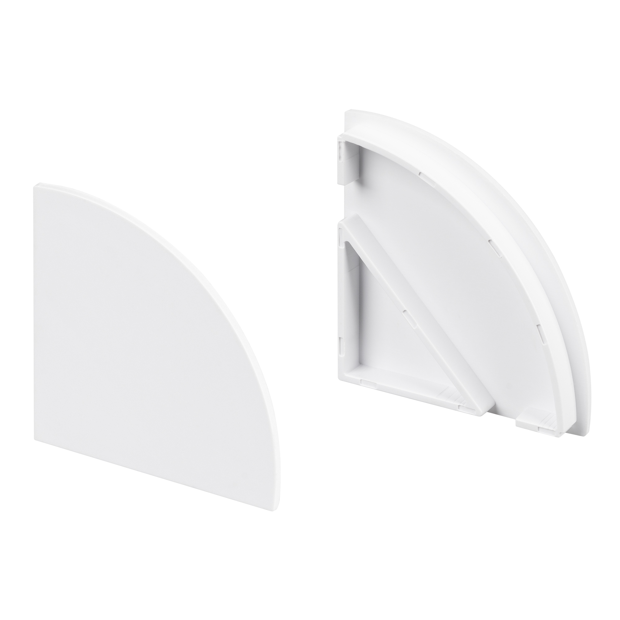 Серебристые глухие заглушки (2 шт.) для профиля KANT-H55 с полукруглым экраном. Придают законченный вид светильнику, а также защищают светодиодную ленту от внешних факторов (грязи, пыли и прочего).