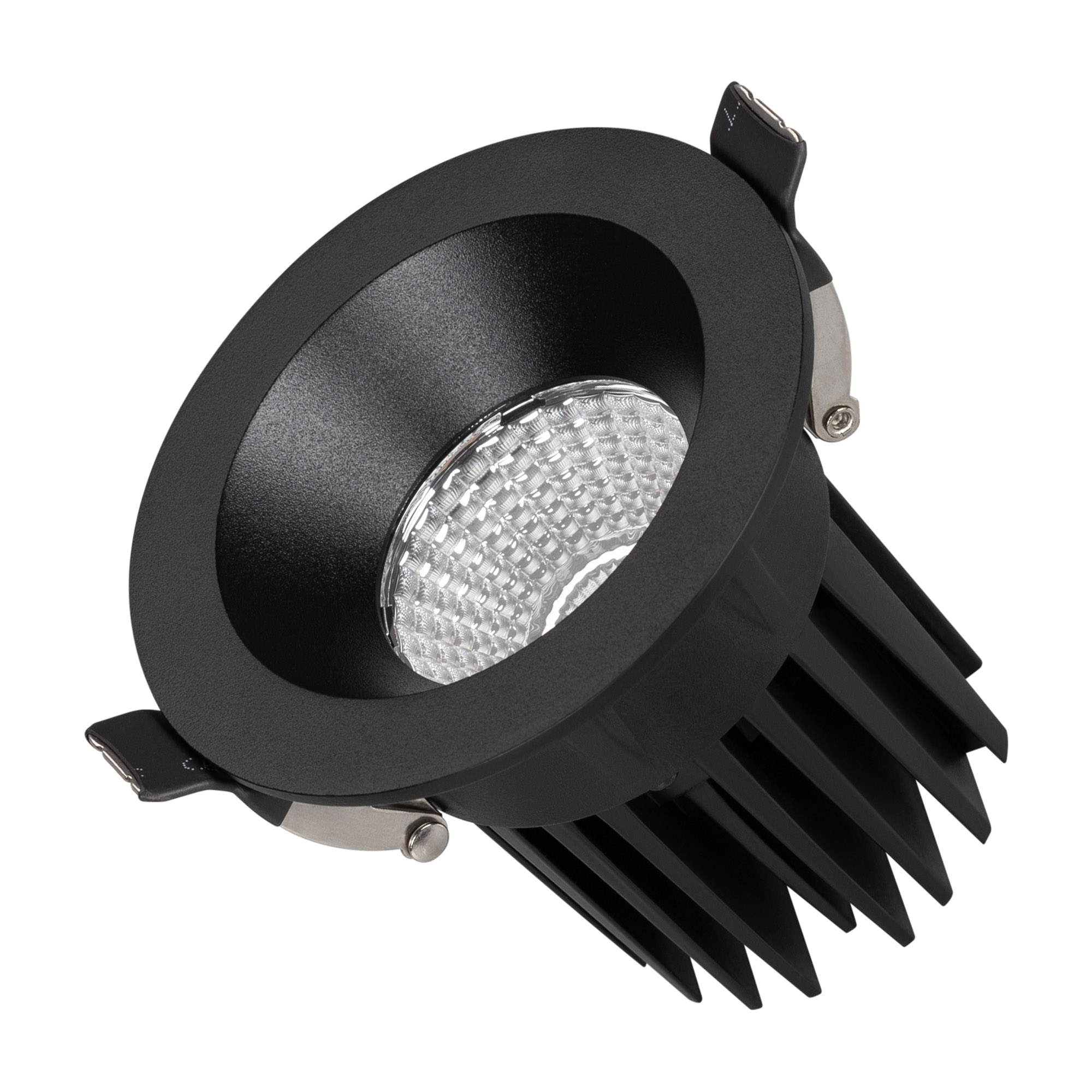 Встраиваемый светильник даунлайт. Мощность 10 Вт, св. поток 910 лм, 90 лм/Вт, дневной 4000 K, CRI>90, угол 60°, напряжение питания 230 В. Чёрный круглый корпус из алюминия, экран PMMA, степень защиты IP54. Размер: диаметр 86 мм, высота 80 мм. Монтаж встраиваемый, установочное отверстие: диаметр 80 мм. Драйвер IP54, 20-40 В, 250 мА, пульсация <1%.