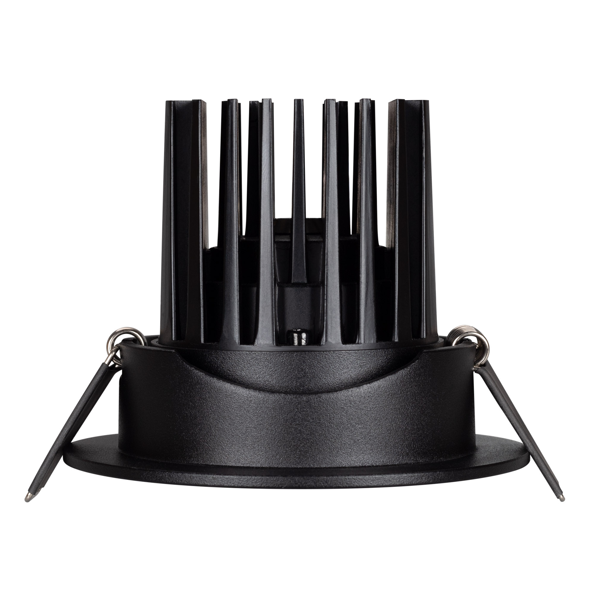 Встраиваемый поворотный светильник даунлайт. Мощность 10 Вт, св. поток 910 лм, 90 лм/Вт, дневной 4000 K, CRI>90, угол 36°, напряжение питания 230 В. Чёрный круглый корпус из алюминия, экран PMMA, степень защиты IP54. Размер: диаметр 94 мм, высота 75 мм. Монтаж встраиваемый, установочное отверстие: диаметр 75 мм. Драйвер IP54, 20-40 В, 250 мА, пульсация <1%.