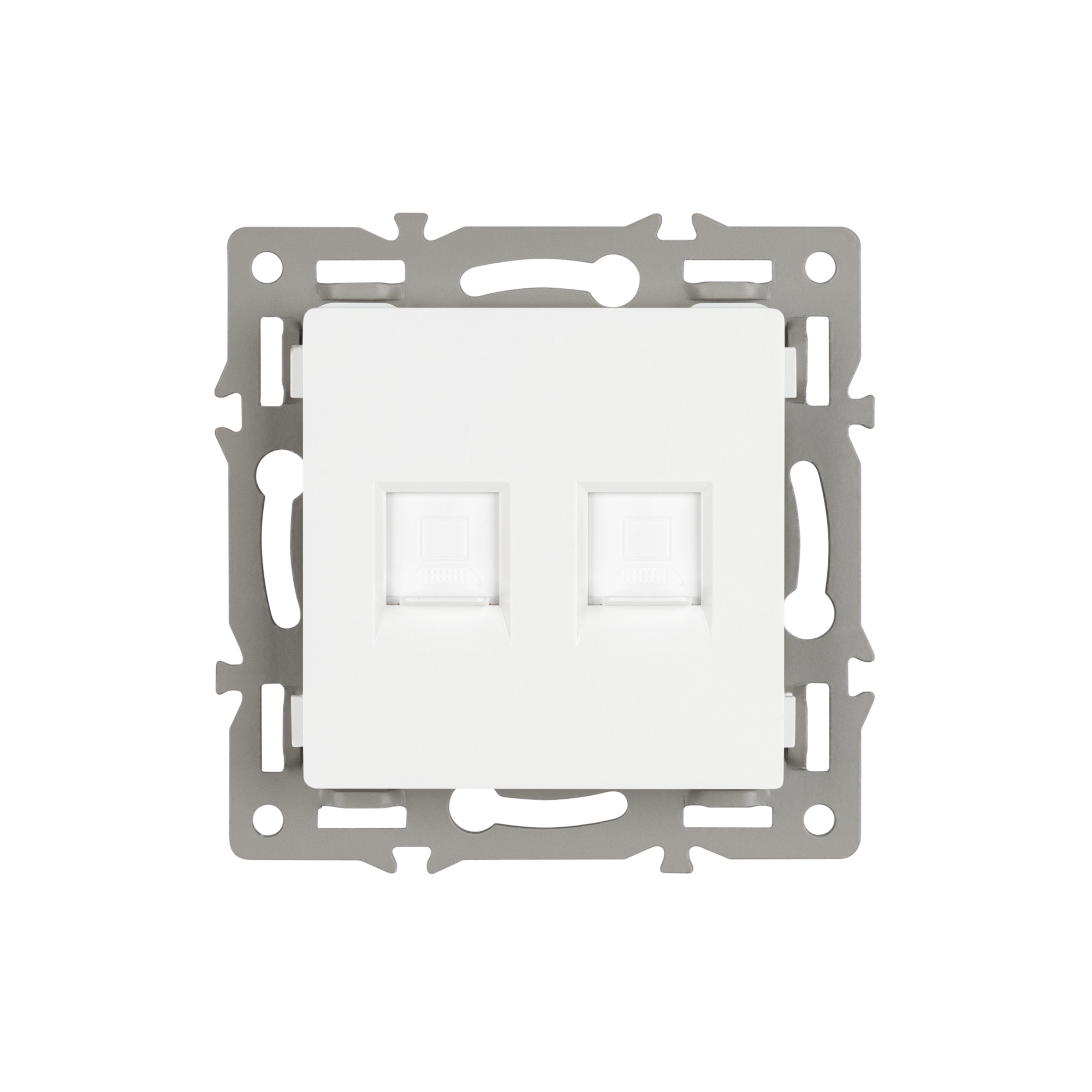Механизм компьютерной розетки на 1 пост 2 слота 6-й категории (CAT6), с суппортом из алюминия. Цвет - белый. Степень пылевлагозащиты - IP20. Устанавливается в стандартный круглый подрозетник 220V (Арт.044895). Рабочее напряжение 110-250V. Макс. ток нагрузки 16А. Габаритные размеры: длина 74 мм, ширина 74 мм, высота 40 мм. Гарантийный срок 10 лет.