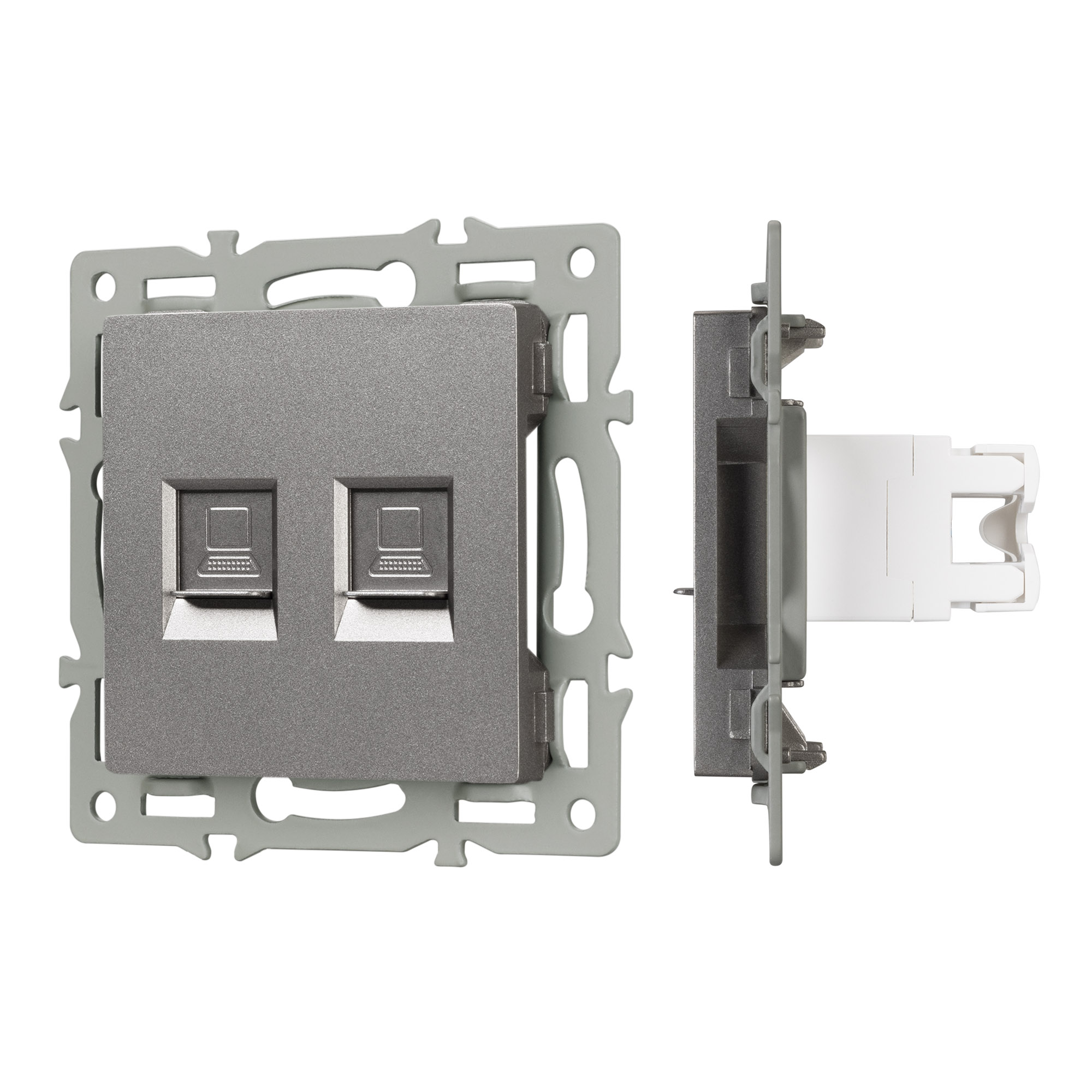Механизм компьютерной розетки двойной SCT-MPC2-PL-GR (RJ-45, CAT6) (Arlight, -)