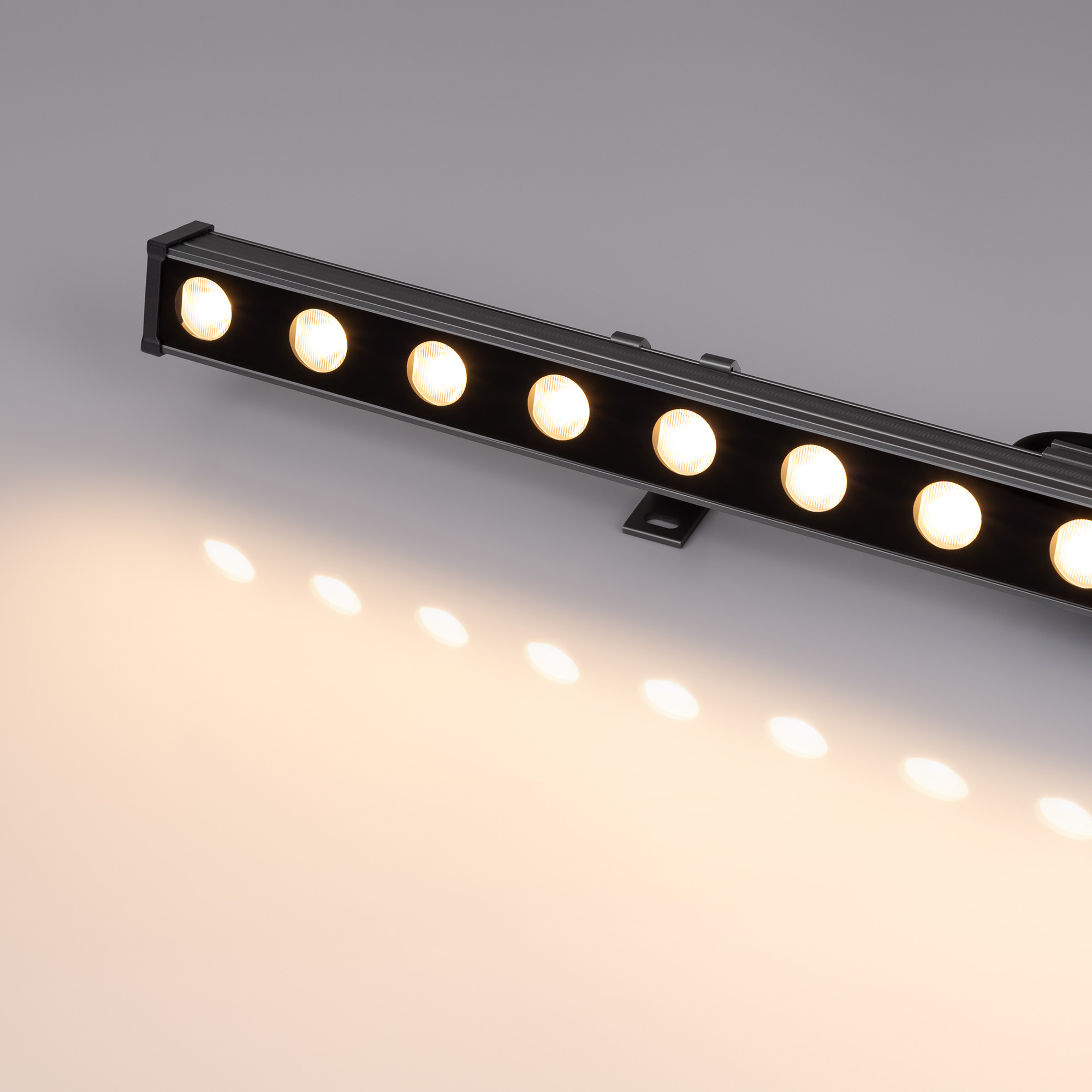 Ультратонкий линейный прожектор LINE широко используется для декоративной подсветки зданий, а также архитектурных и скульптурных объектов: памятников, мостов, арок и др. Специальная оптика, установленная в прожекторе, формирует распределение светового потока с узконаправленным углом излучения, что позволяет создать яркую и красивую иллюминацию фасадов зданий, а также сделать акценты на архитектурных формах. Применение в прожекторе SMD-светодиодов с высокой световой эффективностью 80 лм/Вт экономит значительную долю электроэнергии. Алюминиевый корпус серого цвета выполнен со степенью пылевлагозащиты IP65 для эксплуатации в помещениях или на открытом воздухе, избегая места с большим скоплением воды. Встроенный драйвер позволяет быстро подключить прожектор к сети 230 В. Герметичные разъемы упрощают подключение к кабелю питания и соединение прожекторов последовательно в группы, а два поворотных кронштейна обеспечивают надежный монтаж на поверхности.