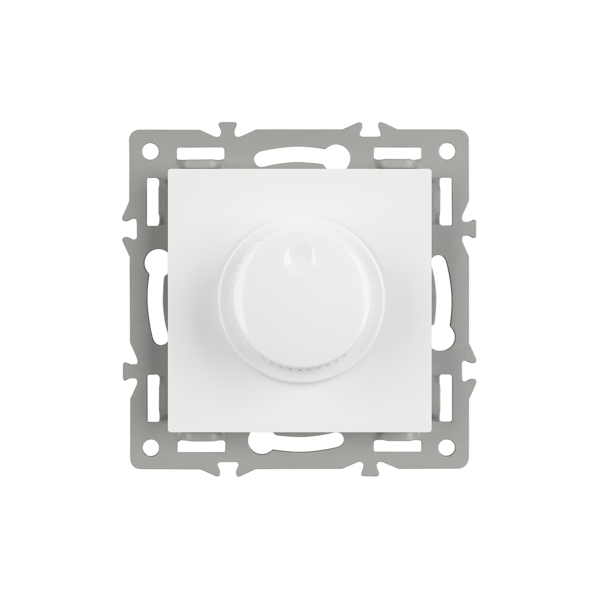 Механизм регулировки света на 1 пост, с суппортом из алюминия. Цвет - белый. Без фронтальной рамки. Уровень пылевлагозащиты - IP20. Механизм устанавливается в стандартный круглый подрозетник. Максимальная нагрузка 300 Вт только для ламп накаливания и галогенных, 100 Вт только для энергосберегающих и светодиодных ламп. Габаритные размеры: длина 74 мм, ширина 74 мм, высота 51 мм. Гарантийный срок 10 лет.