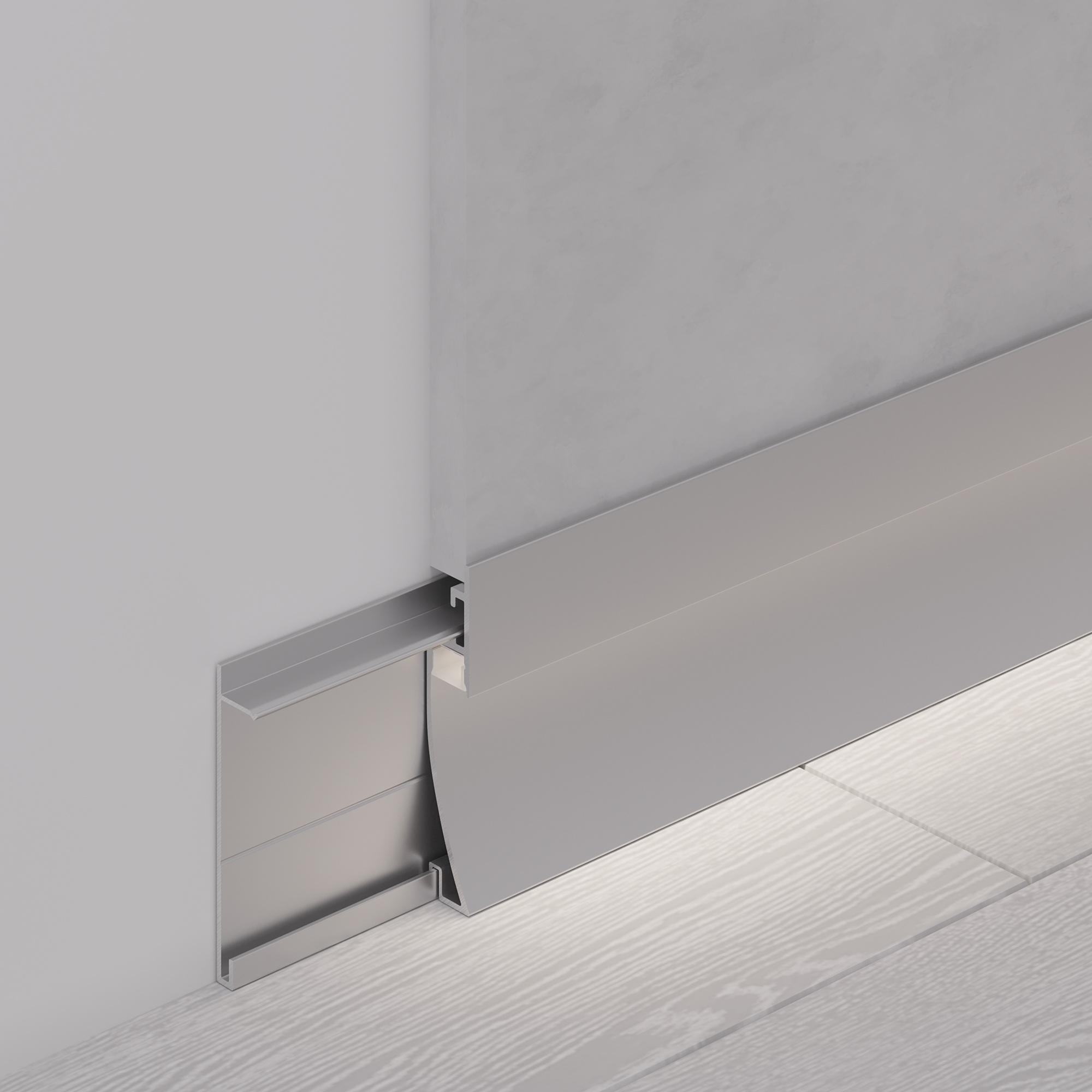 Встраиваемый двухкомпонентный профиль-плинтус из анодированного алюминия с накладным фланцем для создания эффекта парящей стены. Габаритные размеры профиля составляют 2000 мм в длину, 12,2 мм в ширину и 58,3 мм в высоту. Площадка для установки светодиодных лент позволяет использовать ленту шириной до 8 мм и мощностью до 20 Вт/м. Это обеспечивает гибкость в выборе светодиодных лент и создает потрясающие световые решения. Экран, заглушки и другие аксессуары не включены в комплект и приобретаются отдельно. Цена указана за 1 метр профиля. Отличное решение для создания современных световых проектов.
