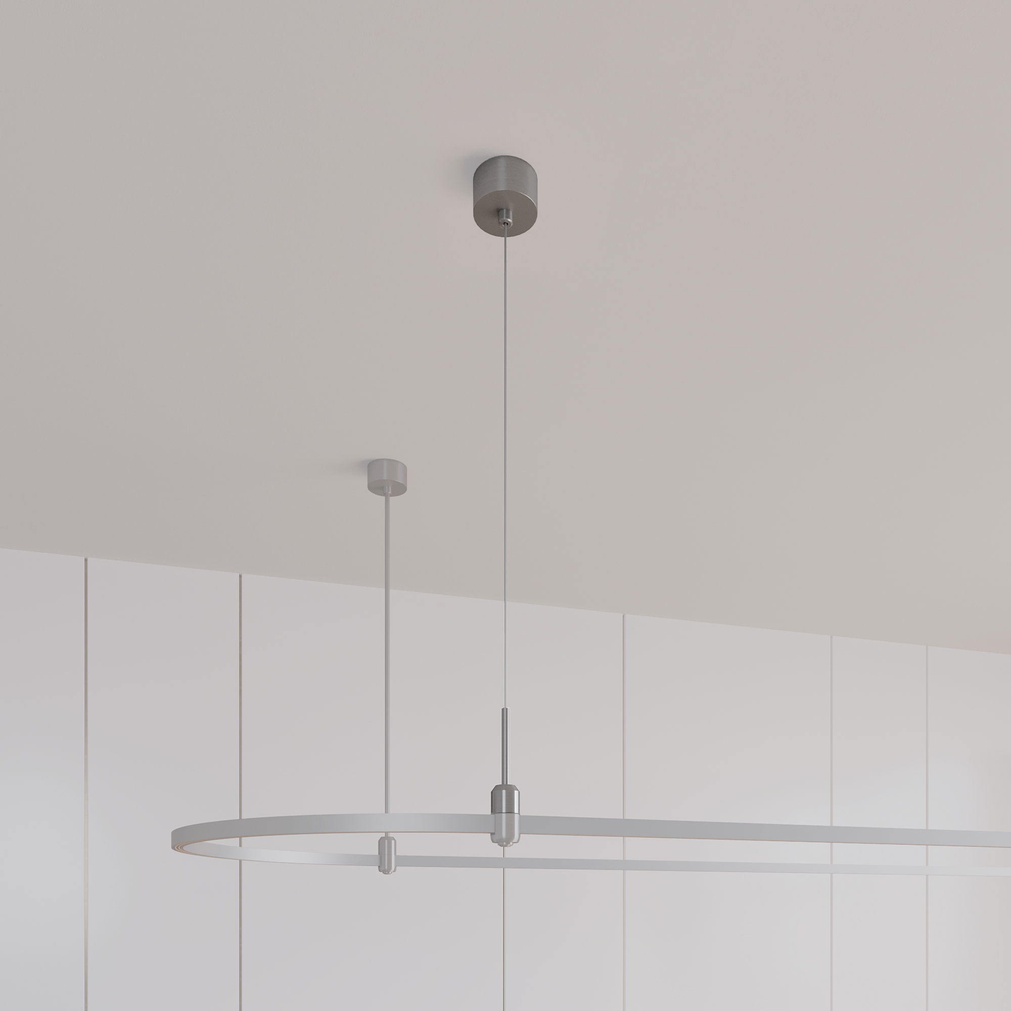 Подвес используется для крепления треков системы APRIORI к потолку или другой поверхности и подвода питания DC48V к системе. Подвес имеет тип крепления A и выдерживает вес до 20 кг. Изготавливается из алюминия, гальванизированного в цвет титан. Диаметр чаши 80 мм, внутренний диаметр чаши 74 мм, внешняя высота чаши 38 мм, глубина чаши до монтажного отверстия 25 мм, общая высота подвеса 1500 мм. Минимальная высота подвеса 200 мм.