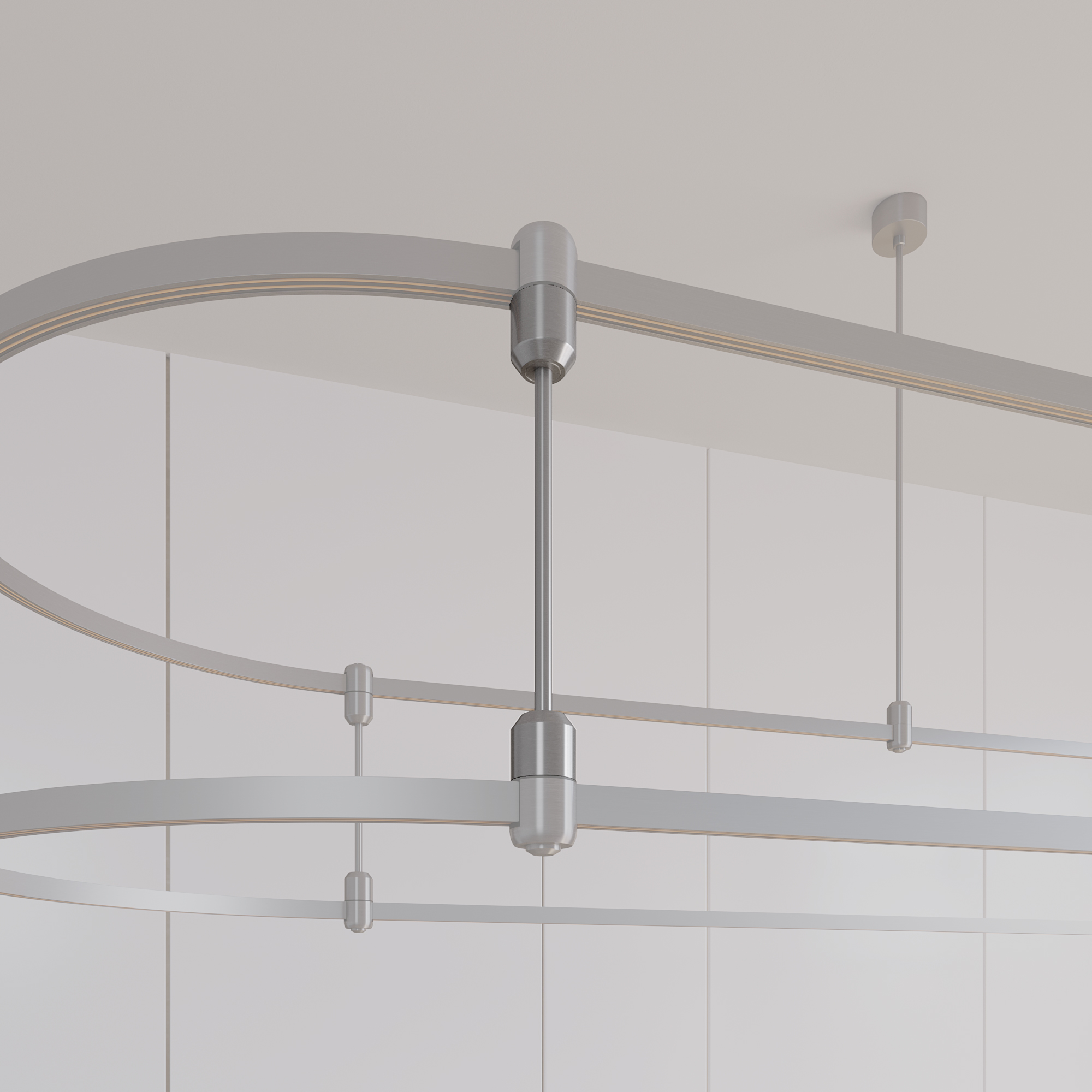 Коннектор жесткий используется для вертикального механического и электрического соединения треков при создании многоуровневых конструкций системы APRIORI. Коннектор имеет тип крепления A. Проводит электричество, напряжение питания 48В. Изготавливается из алюминия, гальванизированного в цвет титан.