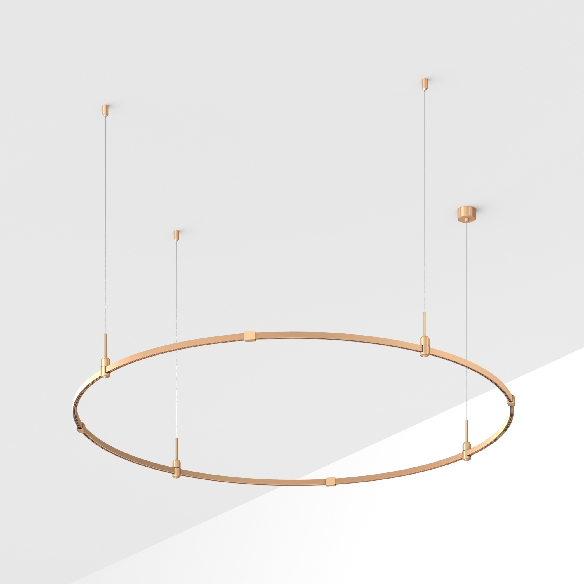 Подвесная конструкция APRIORI, форма круг. В комплекте треки с аксессуарами и гибкими подвесами длиной 1500мм Размер: диаметр 1800мм, высота 22мм. Монтируется подвесным способом. Шинопровод рассчитан на работу с безопасным напряжением DC48В. Изготавливается из алюминия, анодированного в цвет светлое золото. Светильники и источники питания приобретаются отдельно.