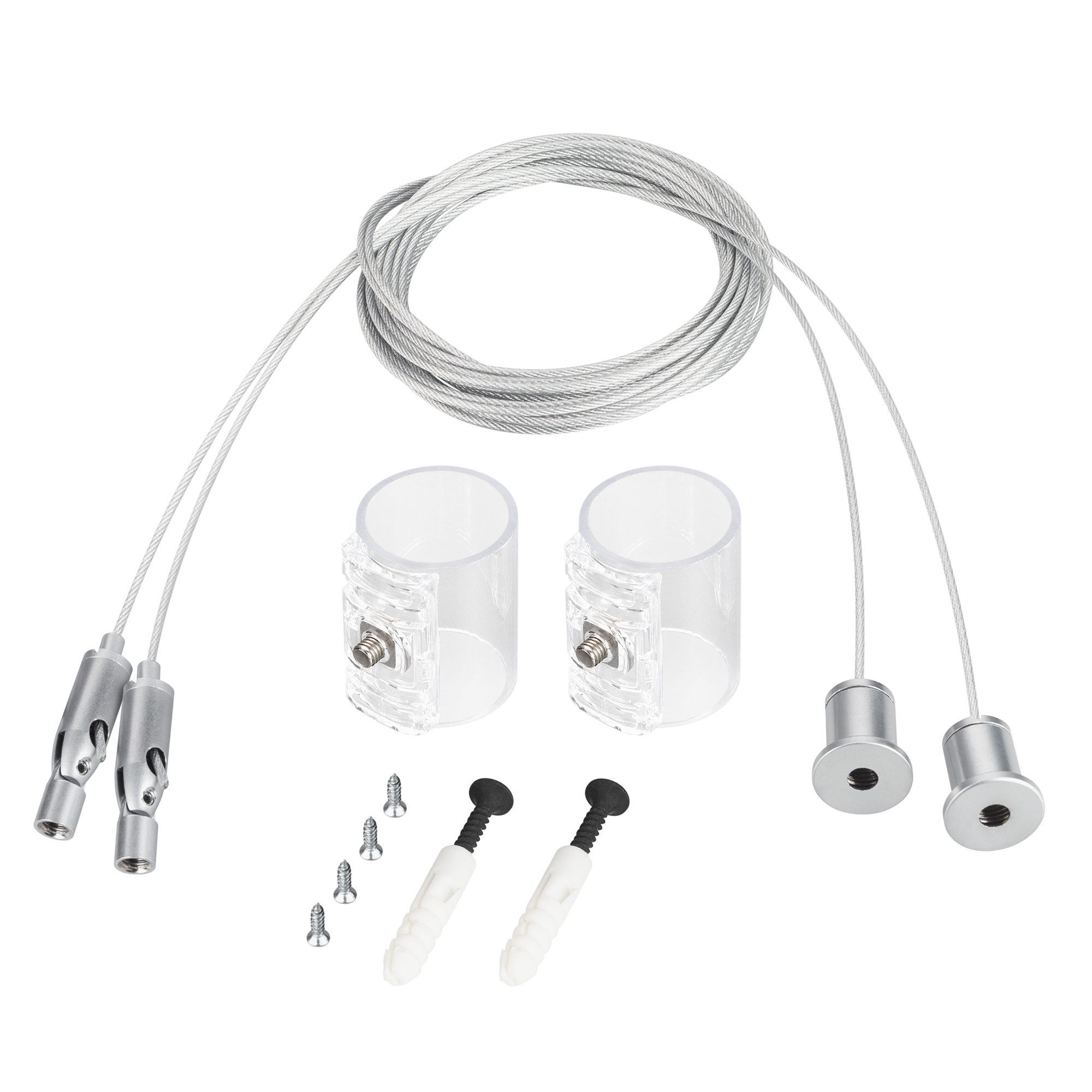 Горизонтальный подвес предназначен для герметичной ленты серии MOONLIGHT D25. Подвес состоит из двух отрезков горизонтальной трубки длиной 38 мм и тросов длиной 2м. Он подходит для любых потолочных поверхностей и совместим с прозрачными трубками с боковым выводом кабеля. Подвес поможет создать уникальное дизайнерское решение для вашего проекта.