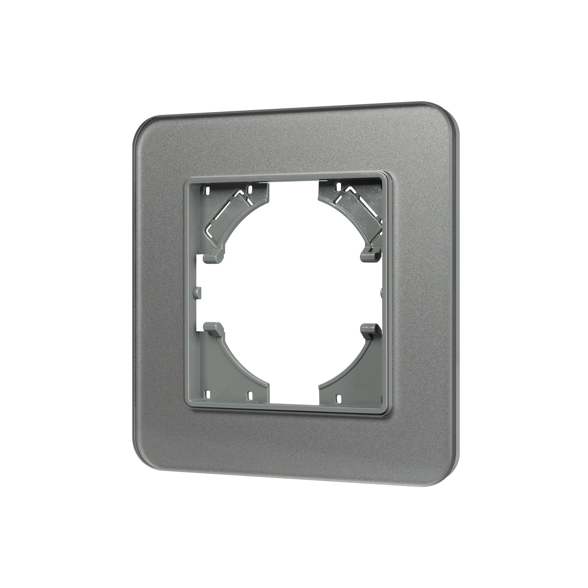 Рамка стеклянная на 1 пост, под встраиваемый механизм. Цвет - серый. Уровень герметичности IP20. Ориентация монтажа - горизонтальная (основным ориентиром служат посадочные выступы для накладки механизма). Габаритные размеры: длина 86 мм, ширина 86 мм, высота 7 мм. Гарантийный срок 12 мес.