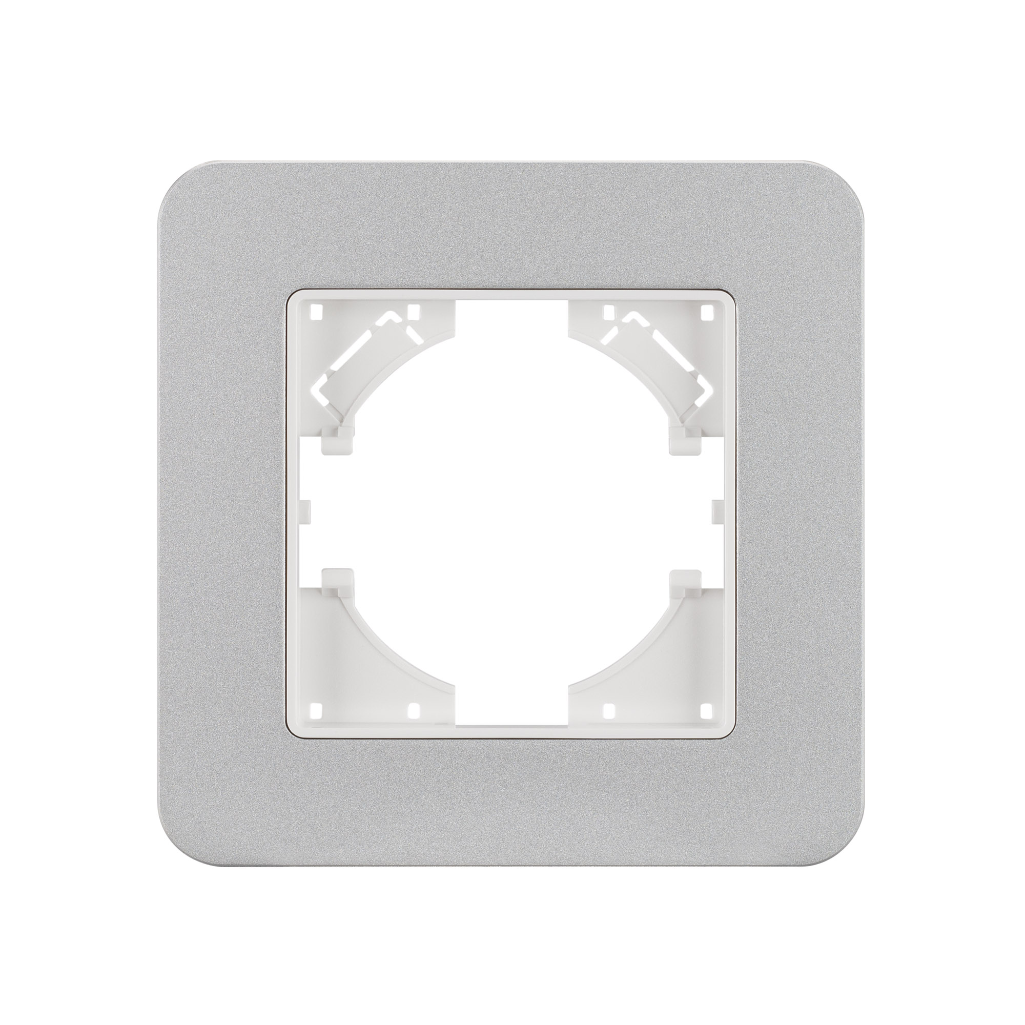 Рамка из серии AKIRY представляет собой комбинацию в виде основы из тугоплавкого пластика и 3-х миллиметровой накладки из алюминиевого сплава. Корпус выполнен в серебристом цвете и поверхностью с Soft-Touch покрытием высотой 7мм, что позволяет гармонично встроить в интерьер любого современного дизайн-проекта. Невидимая часть из тугоплавкого пластика, для надежной фиксации механизма. Грани алюминиевой накладки аккуратно обработаны и отшлифованы, чтобы обезопасить пользователя при установке и демонтаже. Рамка предназначена под встраиваемые механизмы. Ориентация монтажа - горизонтальная (основным ориентиром служат посадочные выступы для накладки механизма).