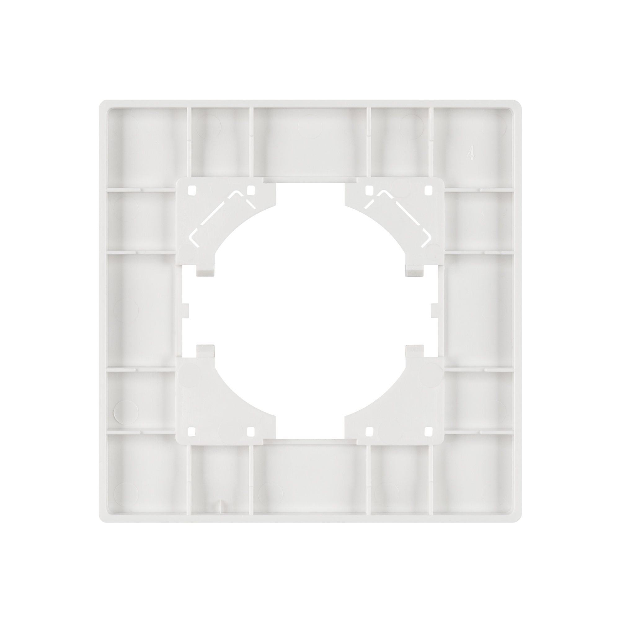 Рамка из серии PERIO изготовлена из высококачественного пластика. Корпус выполнен в белом цвете и матированным покрытием с высотой 7мм, что позволяет гармонично встроить в интерьер любого современного дизайн-проекта. Предназначена под встраиваемые механизмы.
