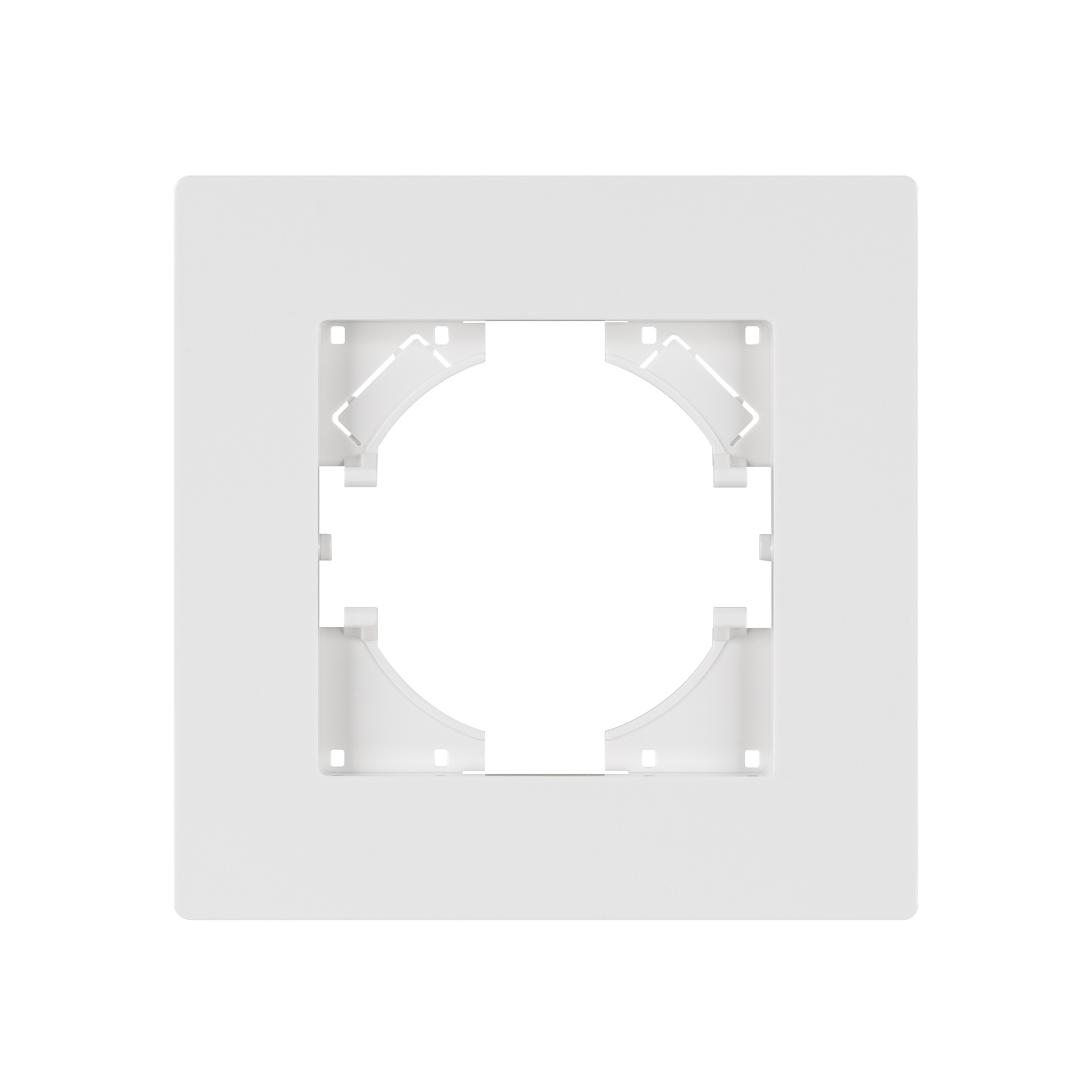 Рамка пластиковая на 1 пост, под встраиваемый механизм. Цвет - белый. Уровень герметичности IP20. Ориентация монтажа - горизонтальная (основным ориентиром служат посадочные выступы для накладки механизма).