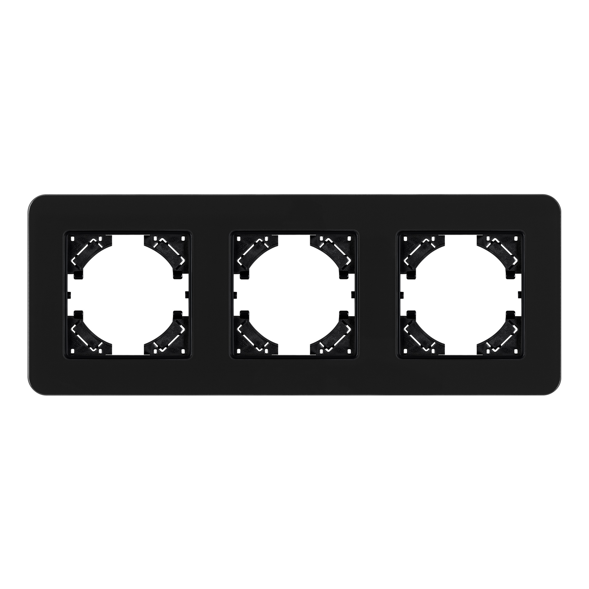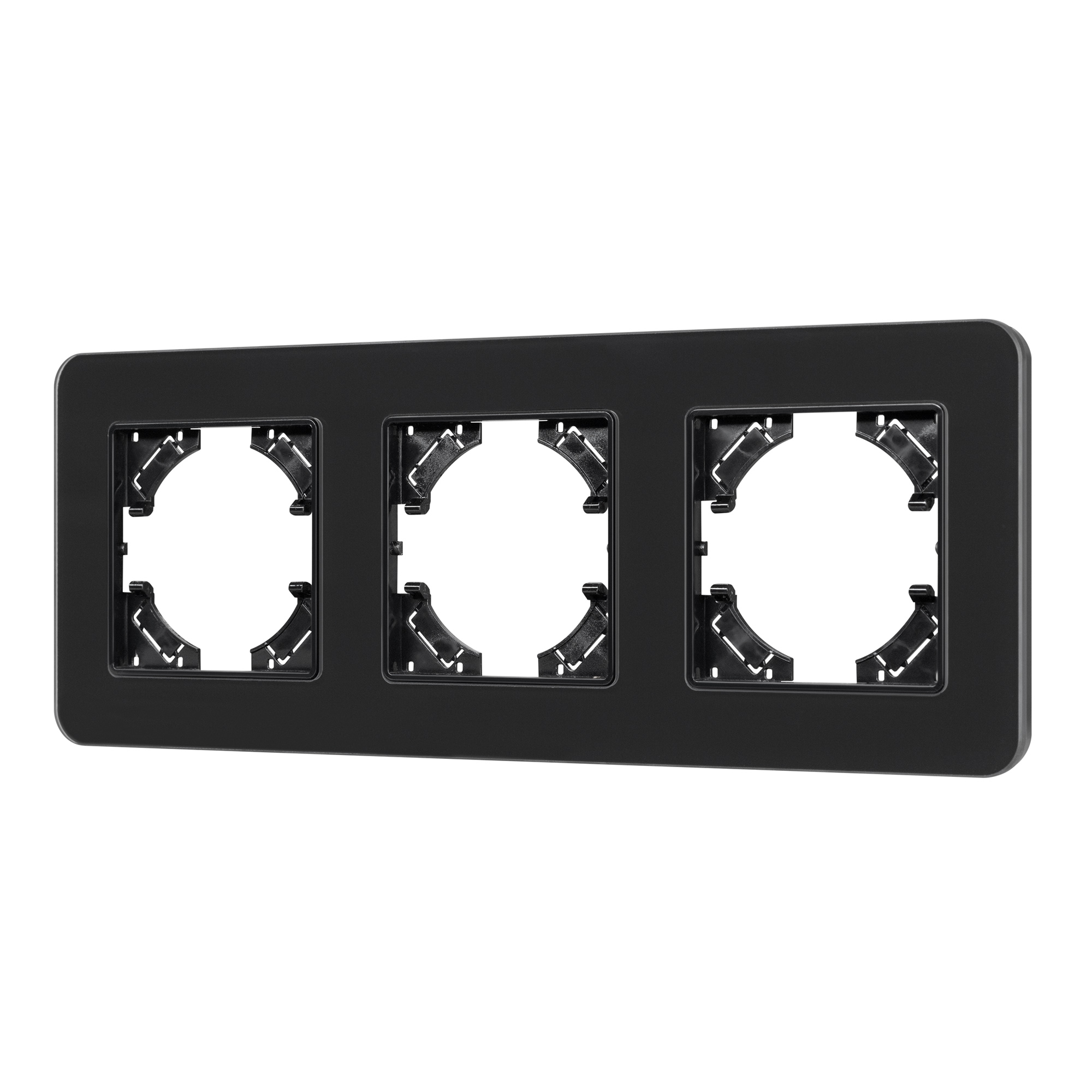 Рамка стеклянная на 3 поста, под встраиваемый механизм. Цвет - черный с Soft-Touch покрытием. Уровень герметичности IP20. Ориентация монтажа - горизонтальная (основным ориентиром служат посадочные выступы для накладки механизма). Габаритные размеры: длина 228 мм, ширина 86 мм, высота 7 мм. Гарантийный срок 12 мес.
