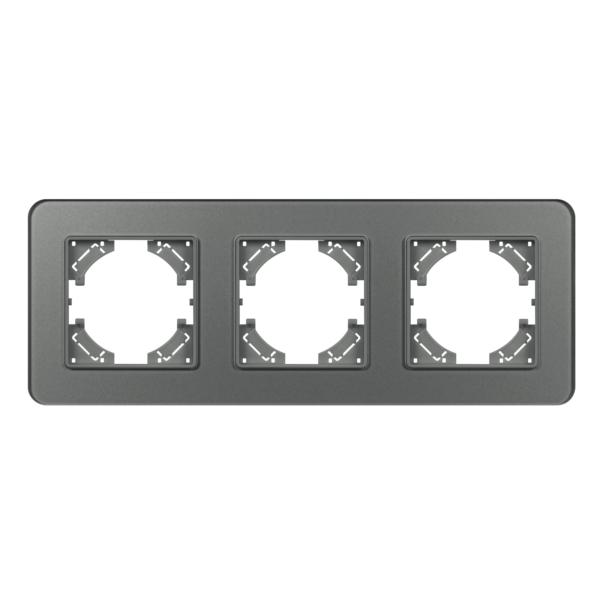 Рамка стеклянная на 3 поста, под встраиваемый механизм. Цвет - серый с Soft-Touch покрытием. Уровень герметичности IP20. Ориентация монтажа - горизонтальная (основным ориентиром служат посадочные выступы для накладки механизма). Габаритные размеры: длина 228 мм, ширина 86 мм, высота 7 мм. Гарантийный срок 12 мес.