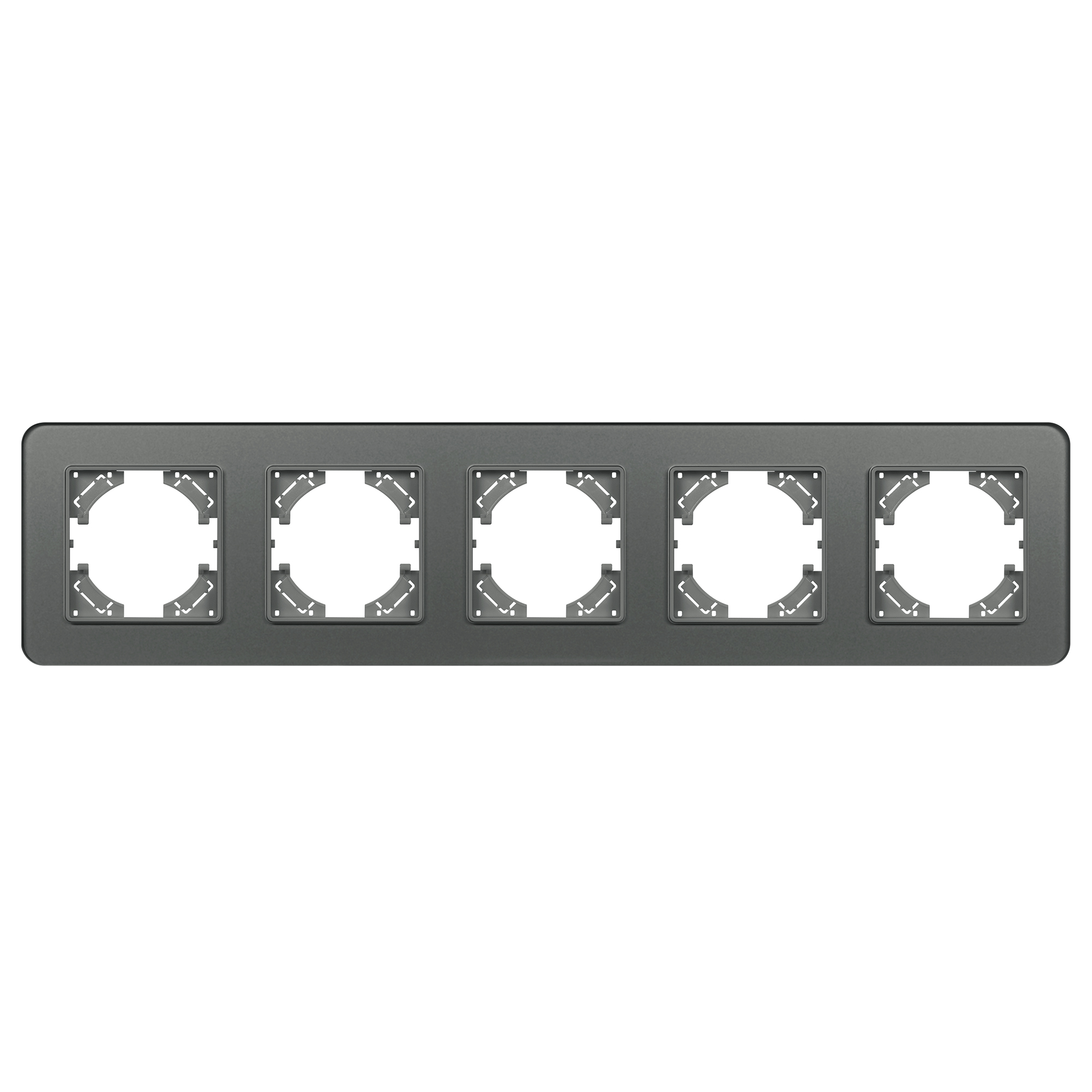 Рамка стеклянная на 5 постов, под встраиваемый механизм. Цвет - серый с Soft-Touch покрытием. Уровень герметичности IP20. Ориентация монтажа - горизонтальная (основным ориентиром служат посадочные выступы для накладки механизма). Габаритные размеры: длина 370 мм, ширина 86 мм, высота 7 мм. Гарантийный срок 12 мес.