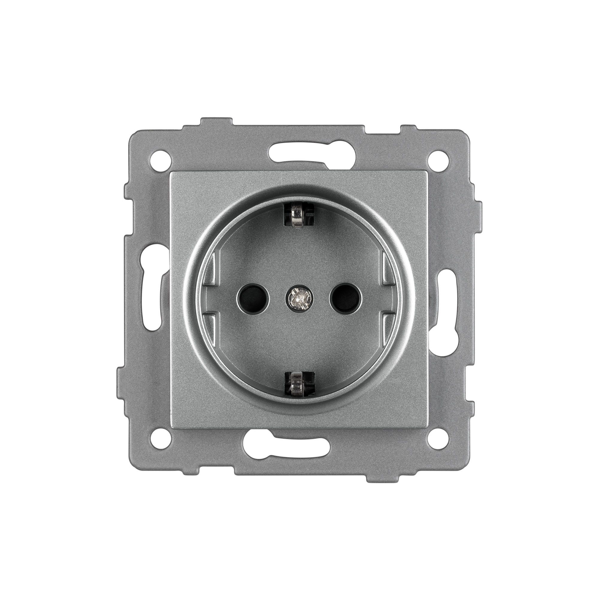 Механизм розетки с заземлением на 1 пост. Цвет - серый. Без фронтальной рамки. Уровень пылевлагозащиты IP20. Устанавливается в стандартный подрозетник. Габаритные размеры: длина 71 мм, ширина 71 мм, высота 44 мм. Гарантийный срок 10 лет.