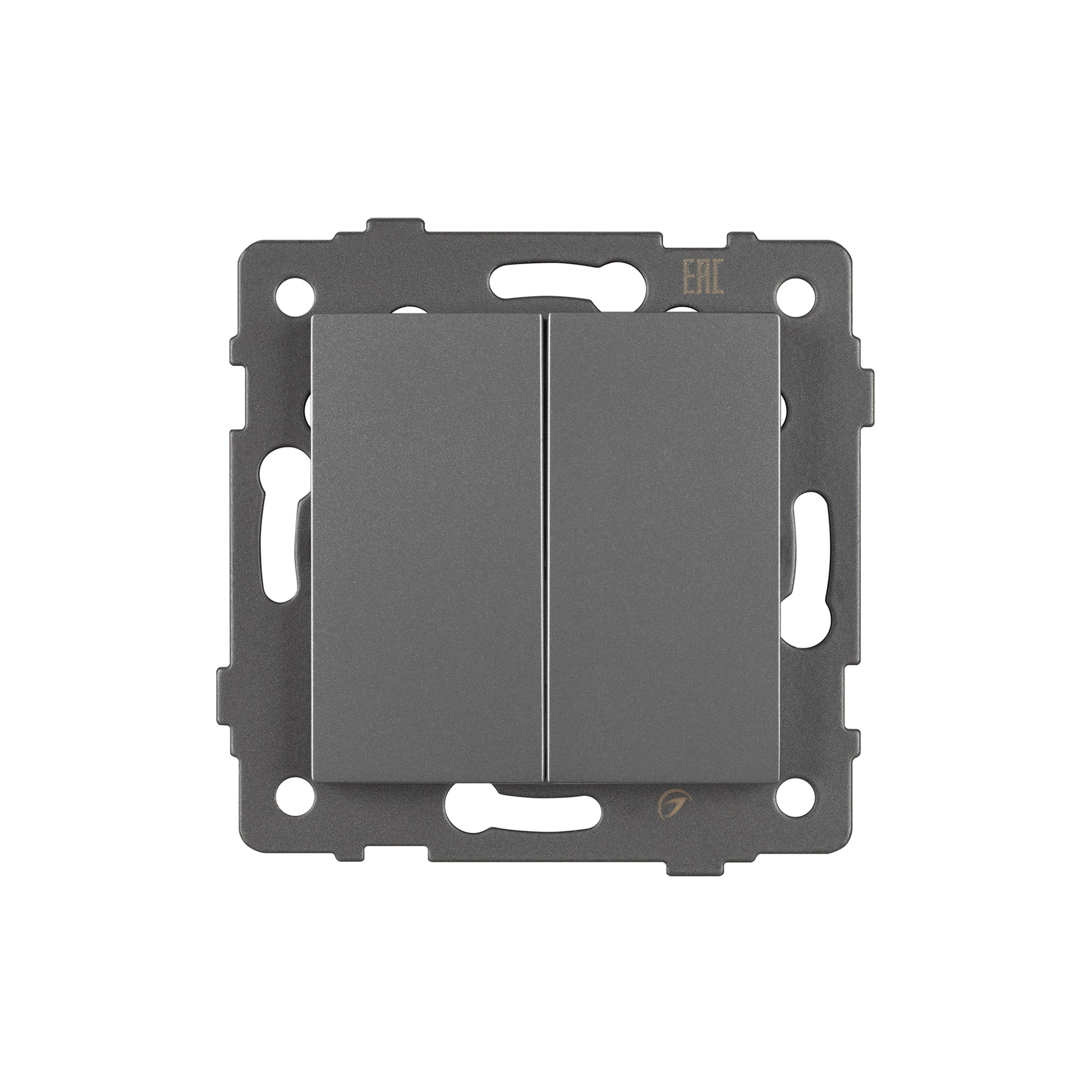 Механизм выключателя света клавишный на 1 пост 2 клавиши (проходной). Цвет - серый. Без фронтальной рамки. Уровень пылевлагозащиты IP20. Выключатель устанавливается в стандартный круглый подрозетник. Габаритные размеры: длина 71 мм, ширина 71 мм, высота 52 мм. Гарантийный срок 10 лет.