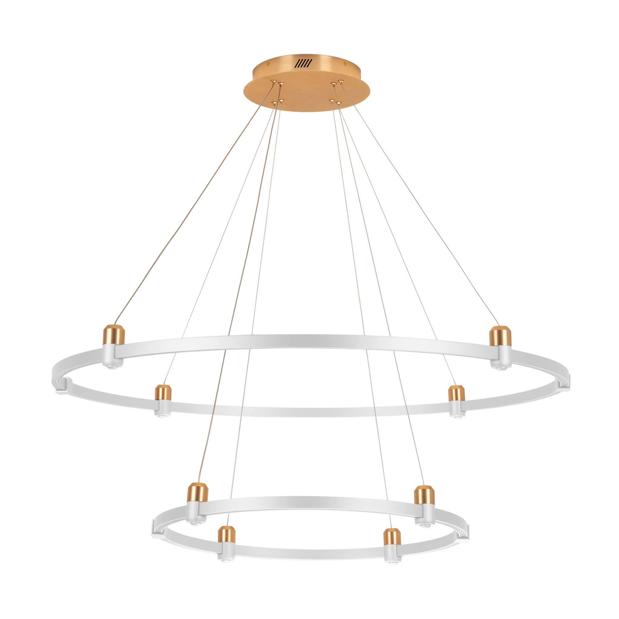 Подвес с прямым подводом питания DC48V и с регулируемыми тросами для подвесного монтажа радиусных треков системы APRIORI. Тип крепления А. Токопроводящий. В комплекте: потолочная чаша - 1 шт., регулируемый трос длиной 5000 мм. - 6 шт., регулируемый трос с токопроводящим медным сечением длиной 5000мм. - 2 шт., Размер: Ø260, длина 5000 мм. Изготавливается из анодированного алюминия, в цвет светлое золото. Максимальная нагрузка 40 кг.