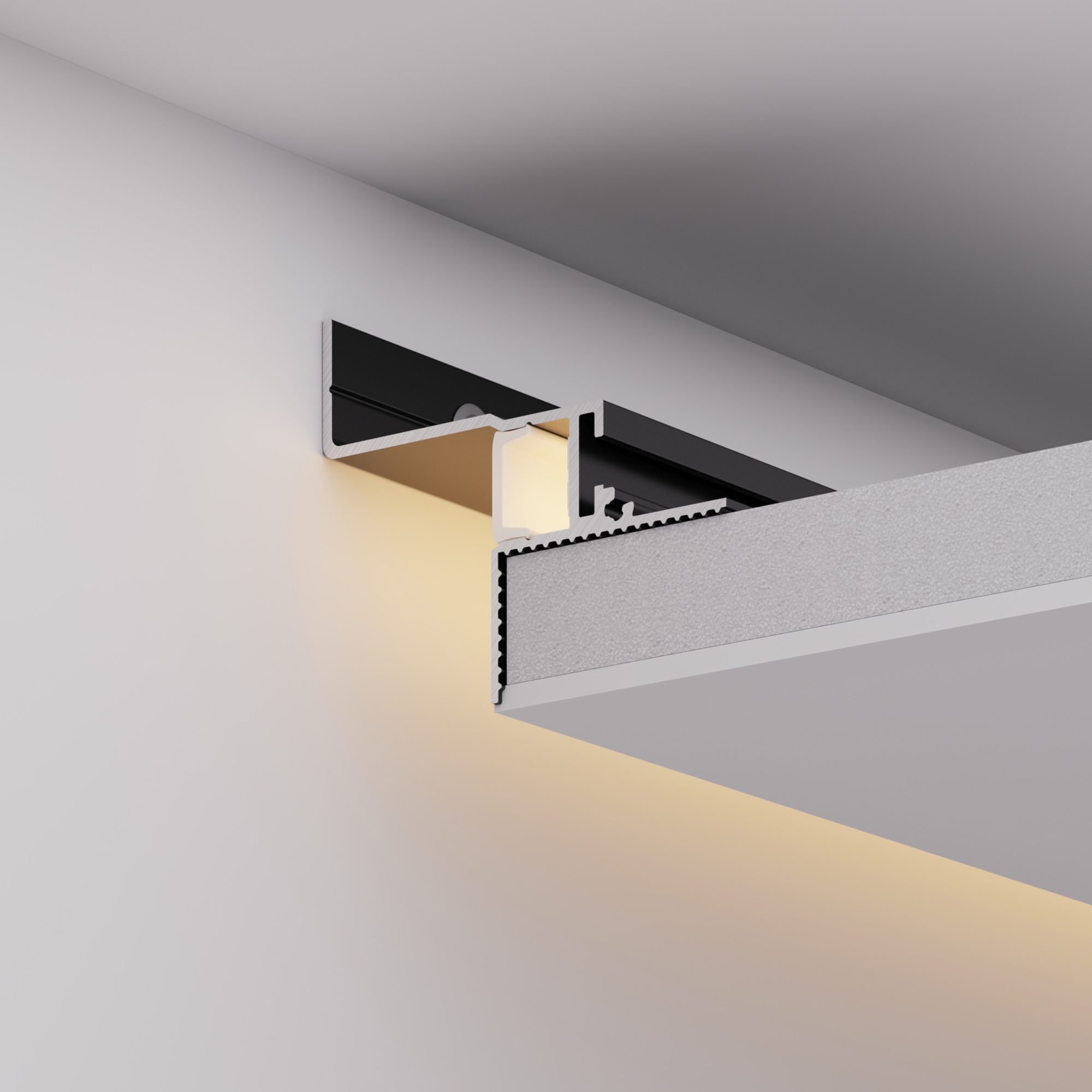 Профиль для создания эффекта парящего потолка с мягким свечением по периметру помещения. Зазор между потолком и стеной 20 мм заполняется свечением от ленты и создает комфортную расслабляющую атмосферу. Стильное решение для современного минималистичного интерьера. Встраиваемый алюминиевый анодированный профиль черного цвета со скрытым фланцем устанавливается в потолки и потолочные ниши из гипсокартона толщиной 12,5 мм. Габаритные размеры профиля составляют 3000 мм в длину, 47 мм в ширину и 39,4 мм в высоту. Площадка для установки светодиодных лент позволяет использовать ленту шириной до 10,3 мм. Это обеспечивает гибкость в выборе светодиодных лент и создает потрясающие световые решения. Экраны, заглушки и другие аксессуары не включены в комплект и приобретаются отдельно. Цена указана за 1 метр профиля.