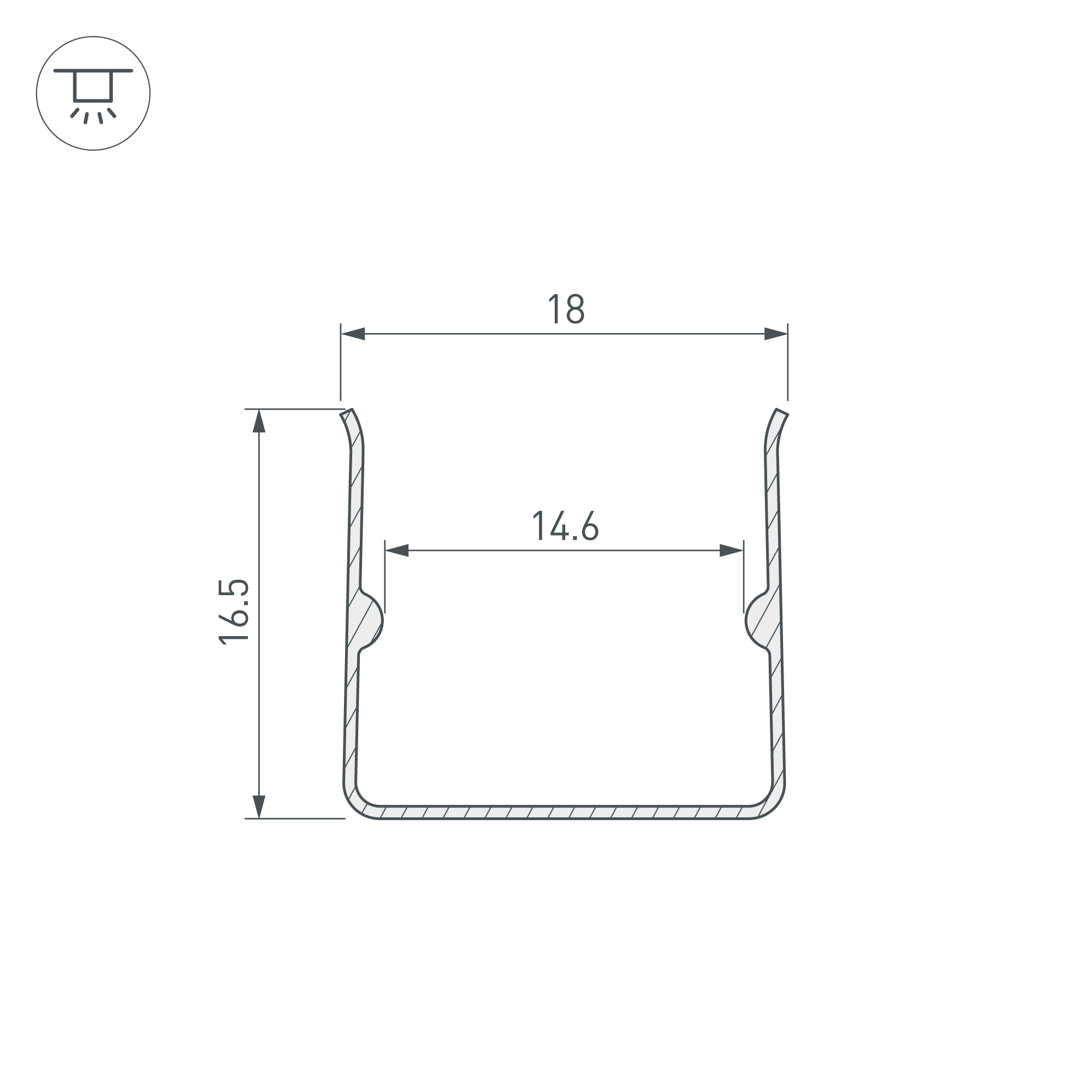Гибкий профиль из нержавеющей стали для накладного монтажа силиконового профиля WPH-FLEX-1616. Габаритные размеры профиля составляют 1000 мм в длину, 16,5 мм в ширину и 18 мм в высоту. Цена за 1 метр.