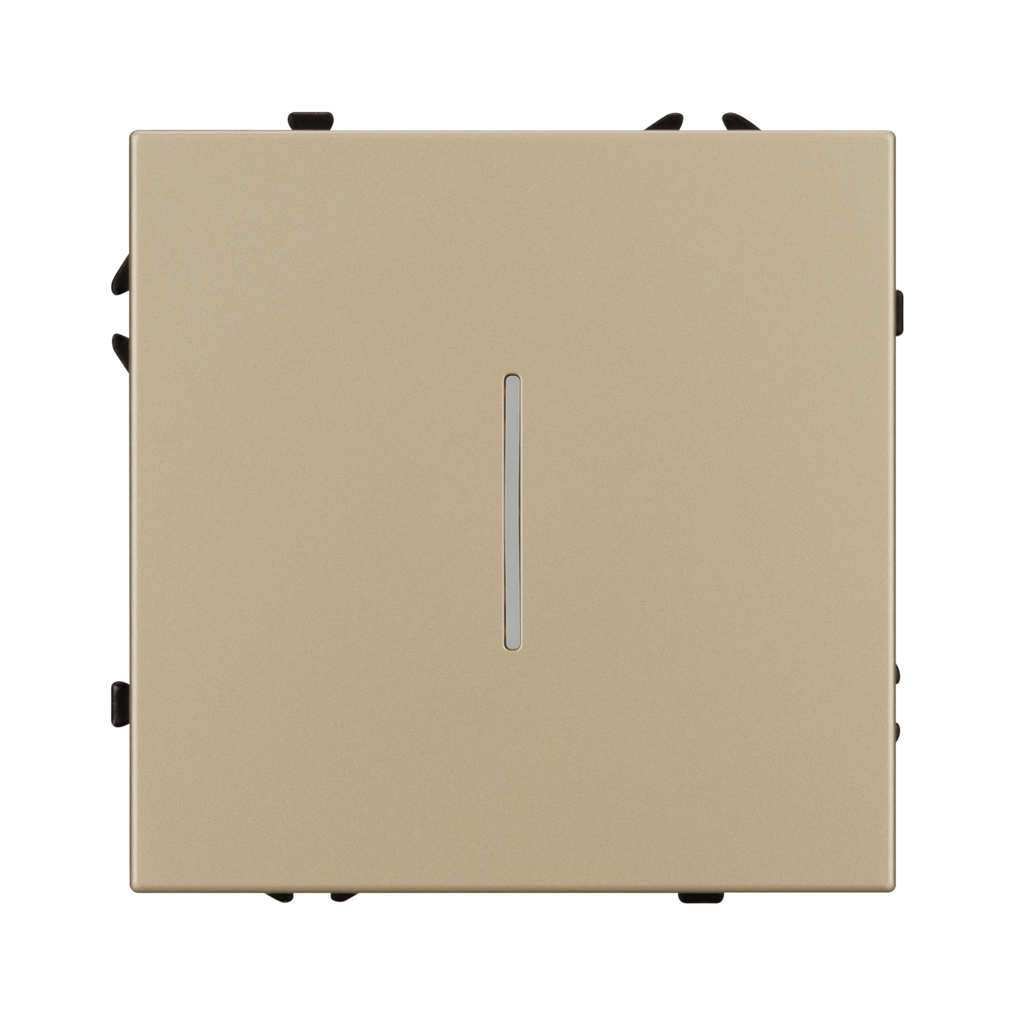 Строгие геометрические линии гармонично сочетаются с функциональностью продуманных механизмов, создавая идеальное решение для дизайн-проектов, где важны как эстетика, так и практичность. Механизм выключателя света совместим с рамками серии NOBE, создает утонченный минималистичный вид. Скрытый тип монтажа позволяет гармонично встроить в интерьер любого современного дизайн-проекта. Видимая часть механизма выполнена из высококачественного пластика цвета золотой песок и имеет Soft-Touch покрытие, что придает изделию приятные тактильные ощущения и стильный внешний вид. Соединение посредством быстрозажимных контактов, позволяет надежно подсоединить механизм выключателя к питающим элементам, минимизируя затраченное время на монтаж. А усиленные распорные лапки двойного захвата надежно фиксируют механизм в установочном подрозетнике круглого сечения диаметром 60мм. Суппорт окрашен в черный матовый цвет под основу механизма и выполнен из металла толщиной 1,5мм, что обеспечивает безопасность и уверенность в установке. На каждой стороне суппорта размещены фиксирующие элементы, позволяющие комбинировать механизмы в системы до 5 шт как горизонтально, так и вертикально. Выключатель оснащен клавишами с активной подсветкой, синего цвета свечения.