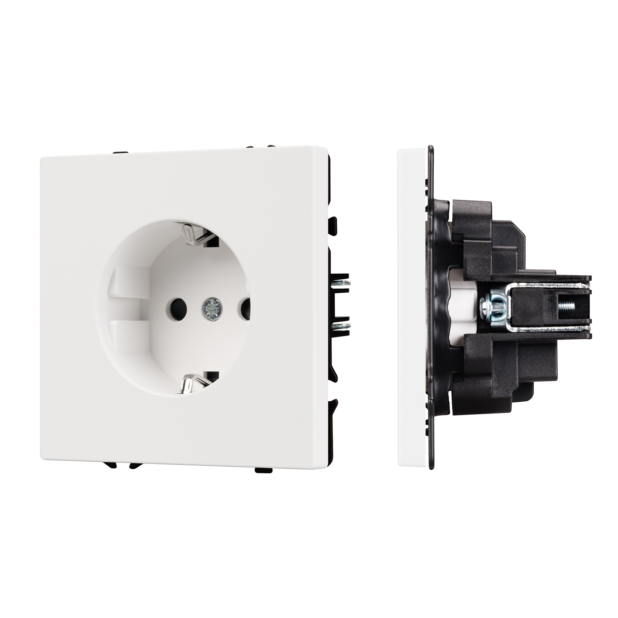 Строгие геометрические линии гармонично сочетаются с функциональностью продуманных механизмов, создавая идеальное решение для дизайн-проектов, где важны как эстетика, так и практичность. Механизм розетки с заземлением совместим с рамками серии NOBE, создает утонченный минималистичный вид. Скрытый тип монтажа позволяет гармонично встроить в интерьер любого современного дизайн-проекта. Видимая часть механизма выполнена из высококачественного пластика цвета белый кварц и имеет Soft-Touch покрытие, что придает изделию приятные тактильные ощущения и стильный внешний вид. Розетка оснащена заземляющими контактами и защитными шторками, обеспечивая надежное и безопасное подключение электроприборов. Соединение посредством быстрозажимных контактов, позволяет надежно подсоединить механизм розетки к питающим элементам, минимизируя затраченное время на монтаж. А усиленные распорные лапки двойного захвата надежно фиксируют механизм в установочном подрозетнике круглого сечения диаметром 60мм. Суппорт окрашен в черный матовый цвет под основу механизма и выполнен из металла толщиной 1,5мм, что обеспечивает безопасность и уверенность в установке. На каждой стороне суппорта размещены фиксирующие элементы, позволяющие комбинировать механизмы в системы до 5шт как горизонтально, так и вертикально.
