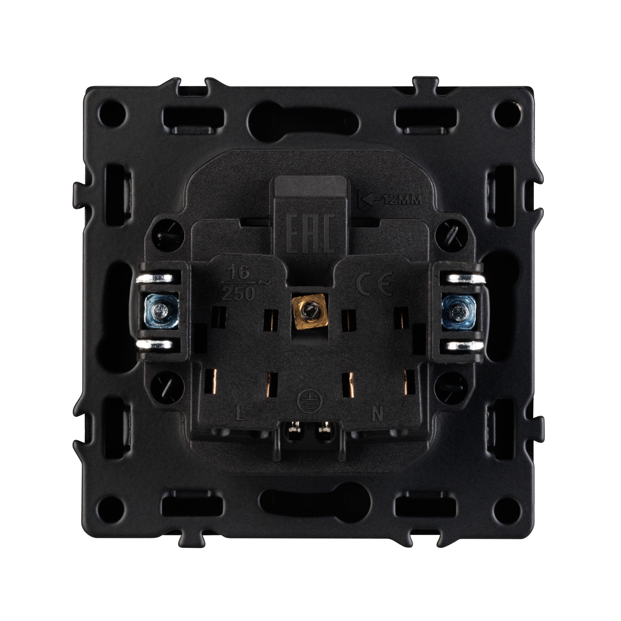 Механизм розетки с заземлением совместим с рамками серии NOBE, создает утонченный минималистичный вид. Скрытый тип монтажа позволяет гармонично встроить в интерьер любого современного дизайн-проекта. Видимая часть механизма выполнена из высококачественного пластика цвета черный оникс и имеет Soft-Touch покрытие, что придает изделию приятные тактильные ощущения и стильный внешний вид.