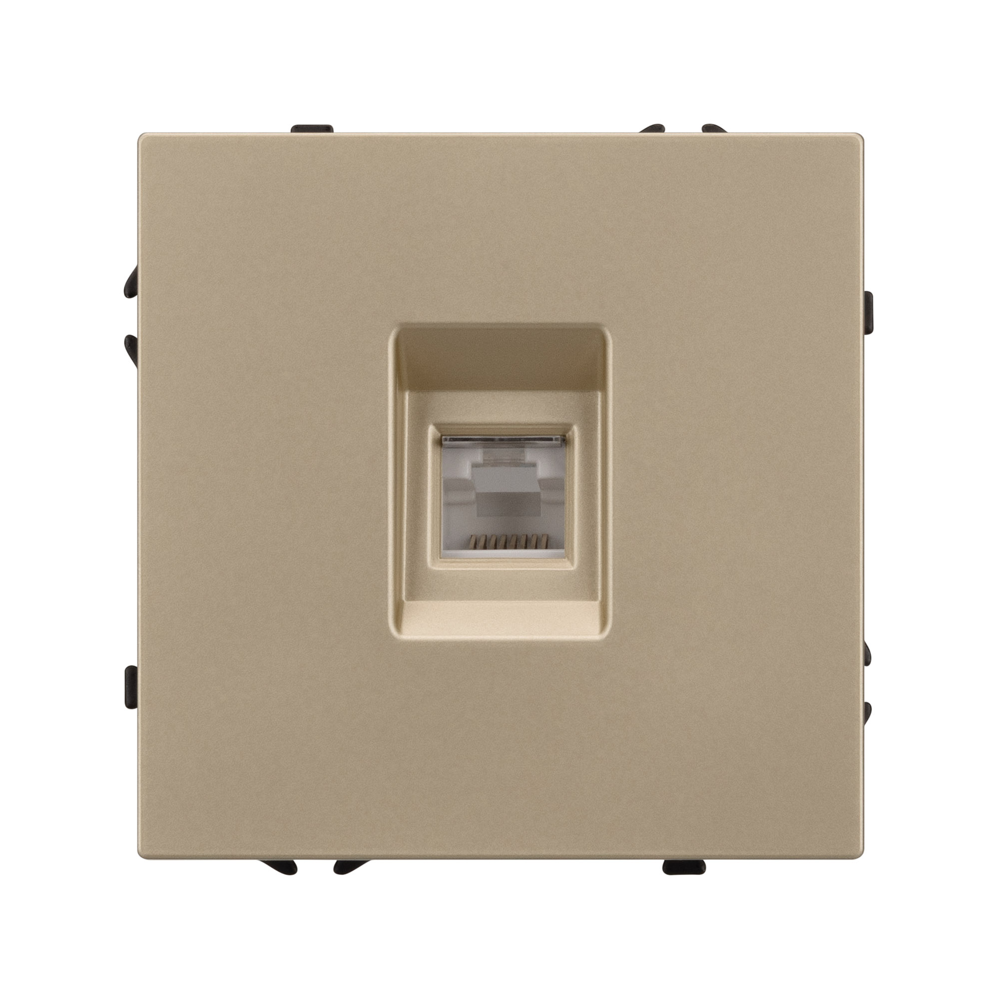 Механизм компьютерной розетки на 1 пост 6-й категории. Цвет - золотой песок, с Soft-Touch покрытием. Без фронтальной рамки. Уровень пылевлагозащиты IP20. Тип подключаемого разъема - RJ45. Розетка устанавливается в стандартный подрозетник круглого сечения диаметром 60мм. Габаритные размеры: длина 71 мм, ширина 71 мм, высота 42 мм. Гарантийный срок 10 лет.