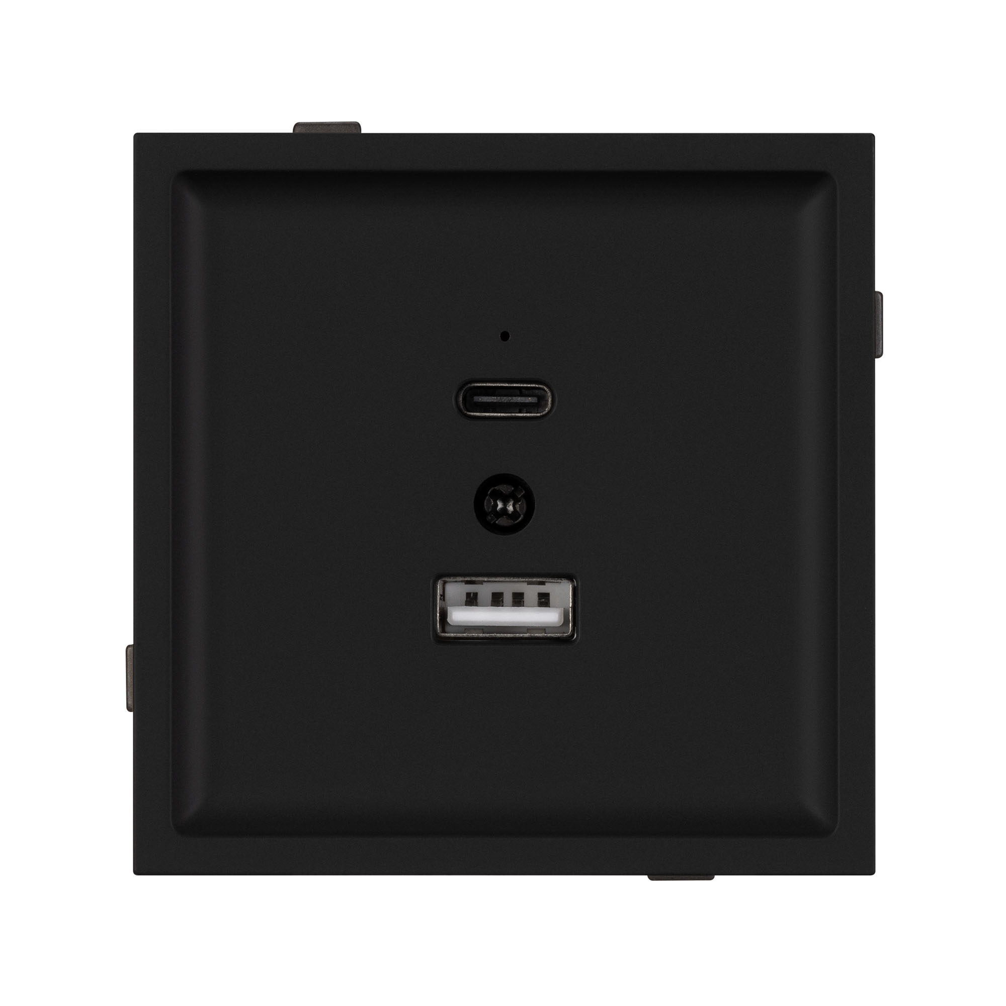 Механизм USB розетки на 2 порта Type A + Type C . Цвет - матовый черный, с Soft-Touch покрытием. Без фронтальной рамки. Выходная мощность для USB Type C порта не превышает 20W. Уровень пылевлагозащиты IP20. Устанавливается в стандартный подрозетник круглого сечения диаметром 60мм. Габаритные размеры: длина 71 мм, ширина 71 мм, высота 42 мм. Гарантийный срок 10 лет.