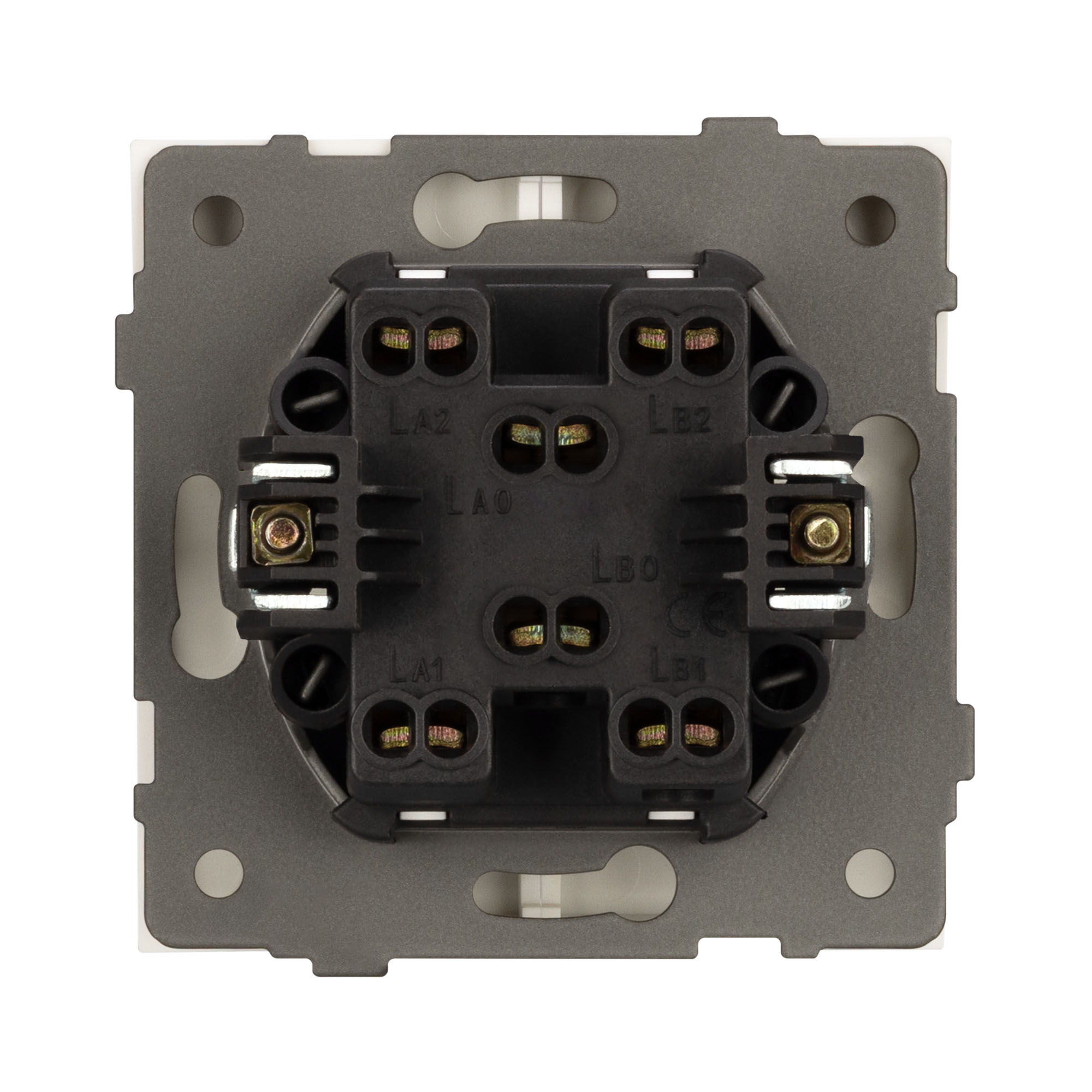 Механизм выключателя света совместим с рамками серии TENDO, создает утонченный минималистичный вид. Скрытый тип монтажа позволяет гармонично встроить в интерьер любого современного дизайн-проекта. Видимая часть механизма выполнена из высококачественного пластика матового песочного цвета и имеет Soft-Touch покрытие, что придает изделию приятные тактильные ощущения и стильный внешний вид. Контактная часть присоединяется при помощи винтовых зажимов, позволяя надежно подсоединить механизм выключателя к питающим элементам. А усиленные распорные лапки двойного захвата надежно фиксируют механизм в установочном подрозетнике круглого сечения диаметром 60мм. На каждой стороне суппорта размещены фиксирующие элементы, позволяющие комбинировать механизмы в системы до 5шт горизонтально, под соответствующую рамку.