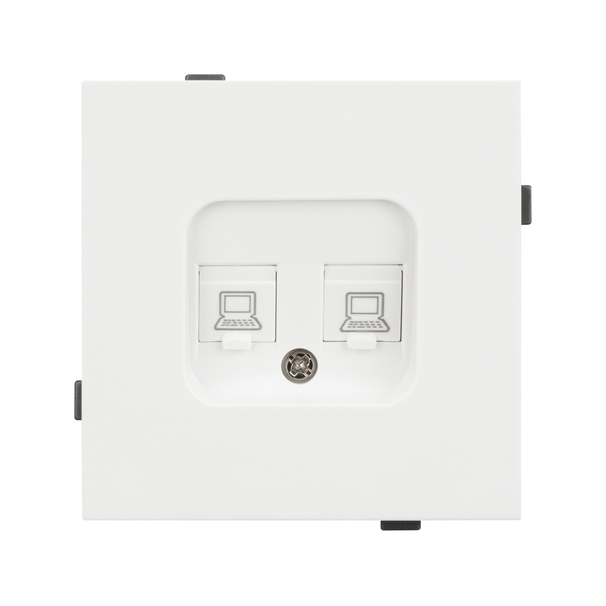 Механизм компьютерной розетки совместим с рамками серии TENDO, создает утонченный минималистичный вид. Скрытый тип монтажа позволяет гармонично встроить в интерьер любого современного дизайн-проекта. Видимая часть механизма выполнена из высококачественного пластика матового белого цвета и имеет Soft-Touch покрытие, что придает изделию приятные тактильные ощущения и стильный внешний вид.