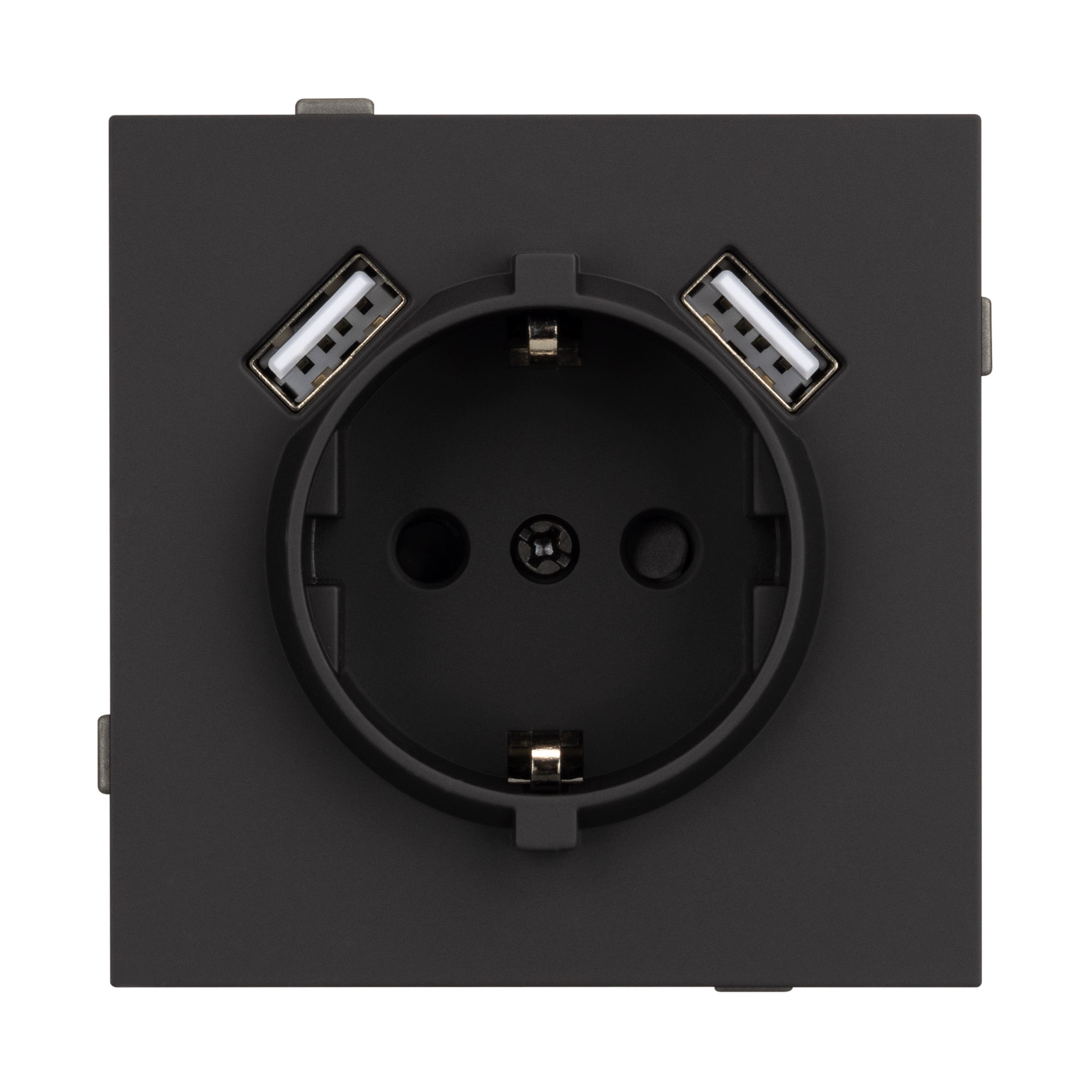 Механизм розетки с заземлением на 1 пост и 2USB Type A порта. Цвет - матовый черный, с Soft-Touch покрытием. Без фронтальной рамки. Уровень пылевлагозащиты IP20. Розетка устанавливается в стандартный подрозетник круглого сечения диаметром 60мм. Габаритные размеры: длина 71 мм, ширина 71 мм, высота 53 мм. Гарантийный срок 10 лет.