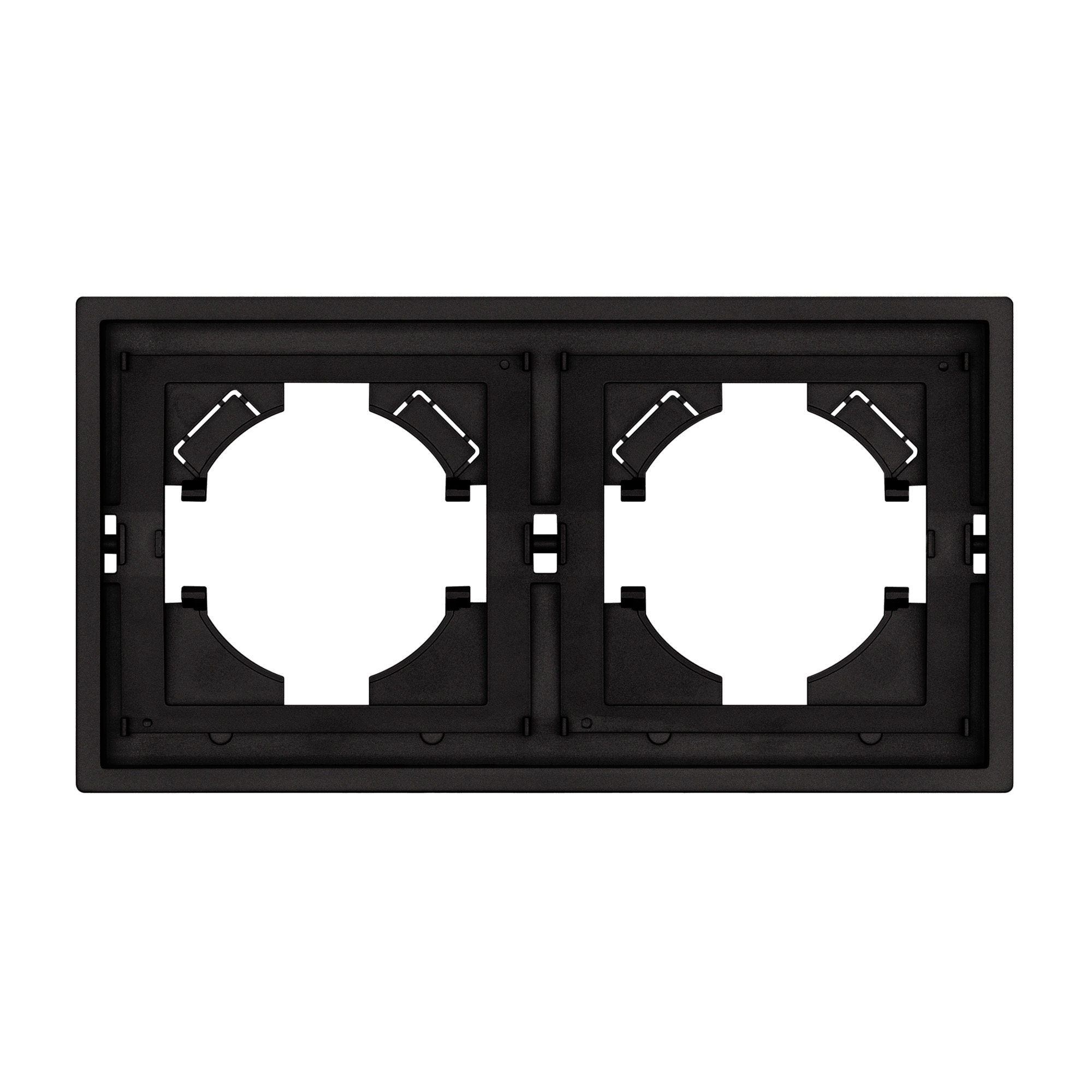 Рамка пластиковая на 2 поста, под встраиваемый механизм. Цвет - матовый черный, с Soft-Touch покрытием. Уровень герметичности IP20. Ориентация монтажа горизонтальная. Габаритные размеры: длина 150 мм, ширина 80 мм, высота 9 мм. Гарантийный срок 12 мес.