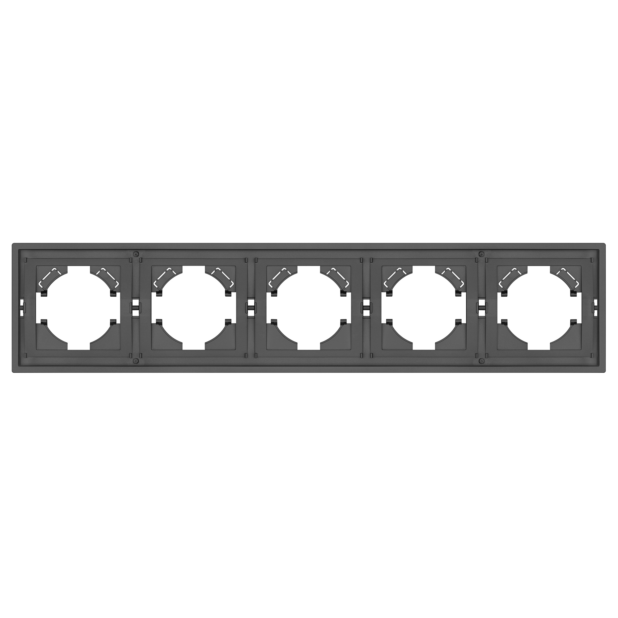 Рамка пластиковая на 5 постов, под встраиваемый механизм. Цвет - матовый графитовый, с Soft-Touch покрытием. Уровень герметичности IP20. Ориентация монтажа горизонтальная. Габаритные размеры: длина 364 мм, ширина 80 мм, высота 9 мм. Гарантийный срок 12 мес.