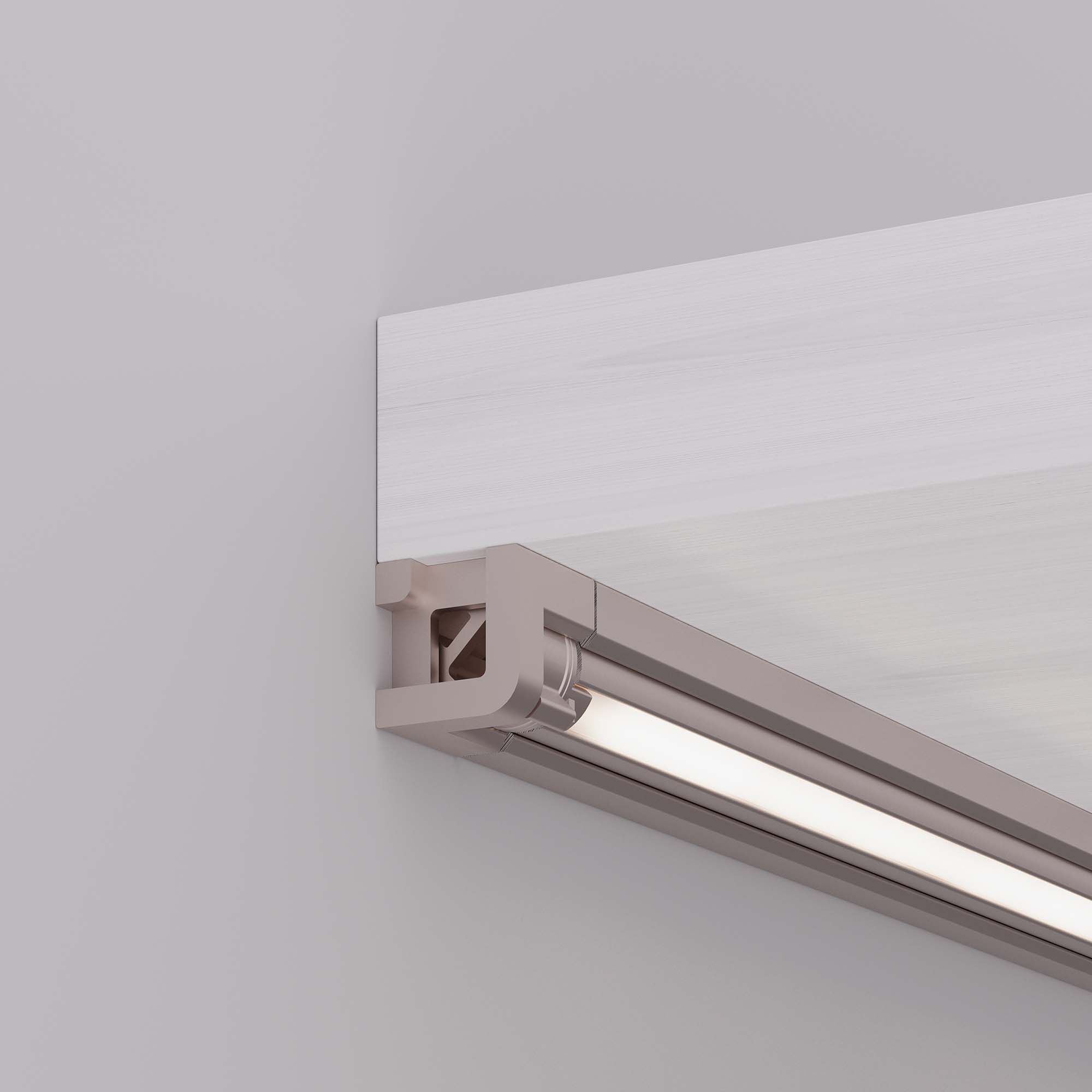 Комплект с экраном. Двухкомпонентный алюминиевый профиль для светодиодных лент и линеек. Цвет - шампань золотой. Внутренняя вставка вращается вокруг своей оси на 360 градусов. Габаритные размеры (L×W×H): 2000x10x10 мм. Ширина площадки для ленты 5,6 мм. В комплекте с матовым экраном из PMMA. Цена за комплект. Заглушки и другие аксессуары приобретаются отдельно.