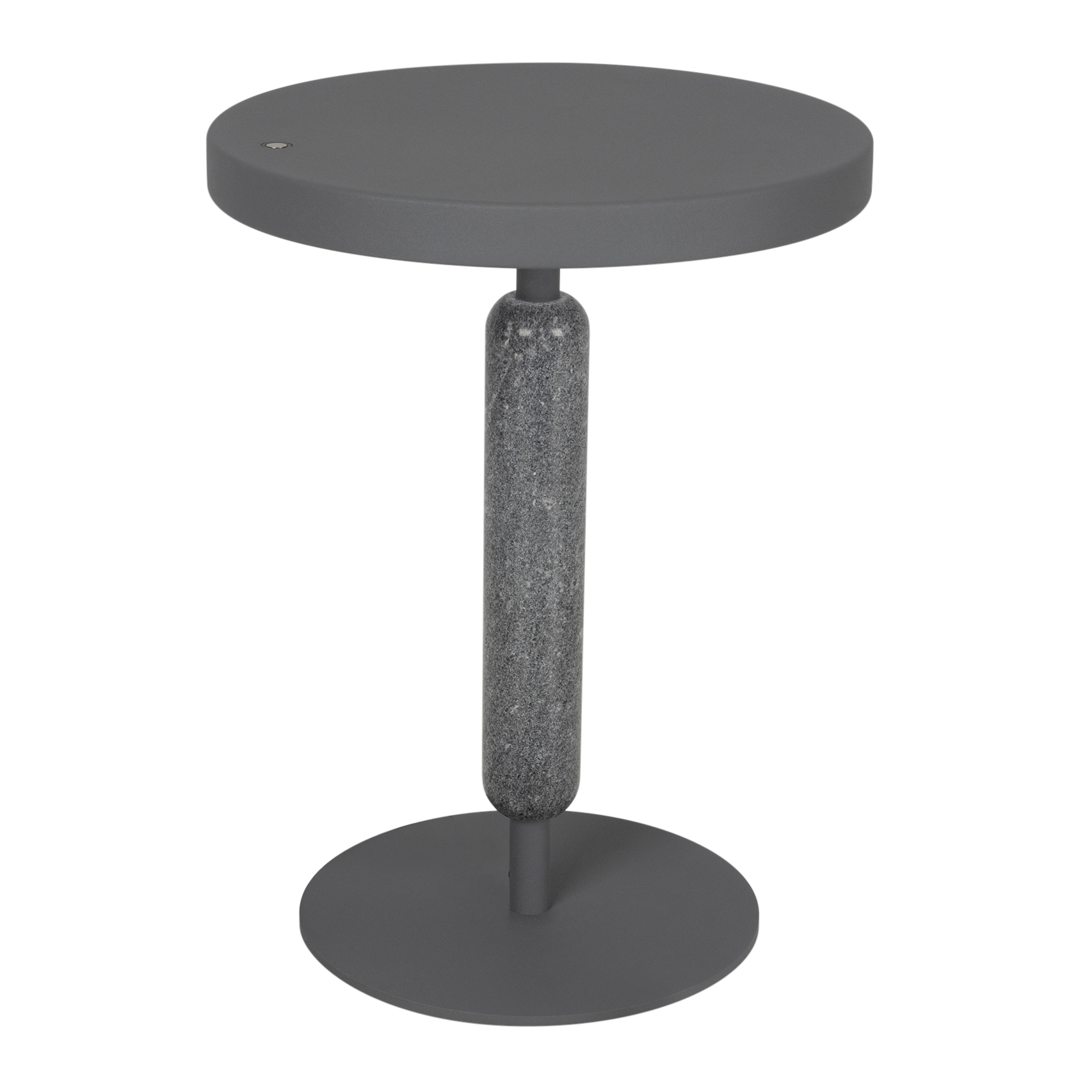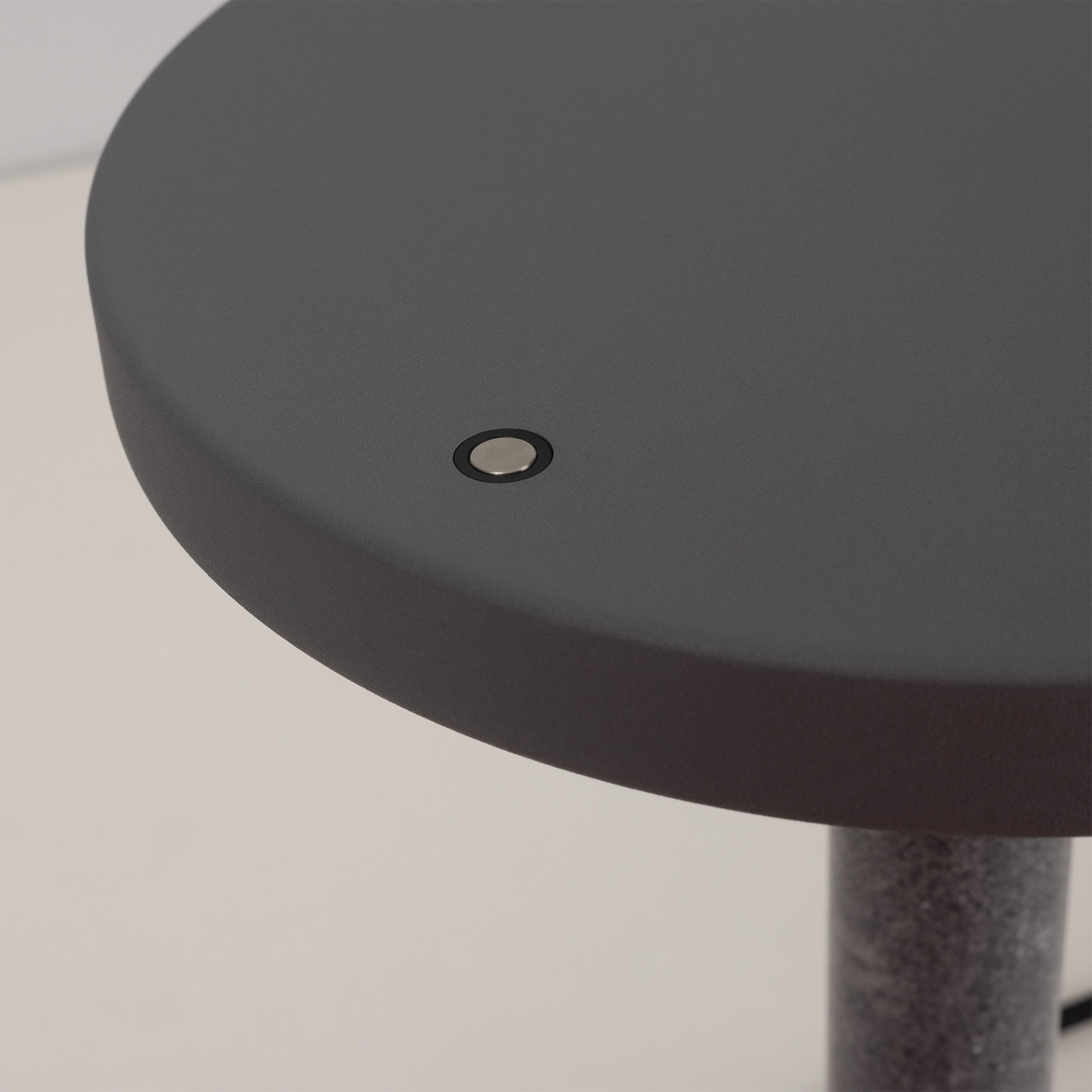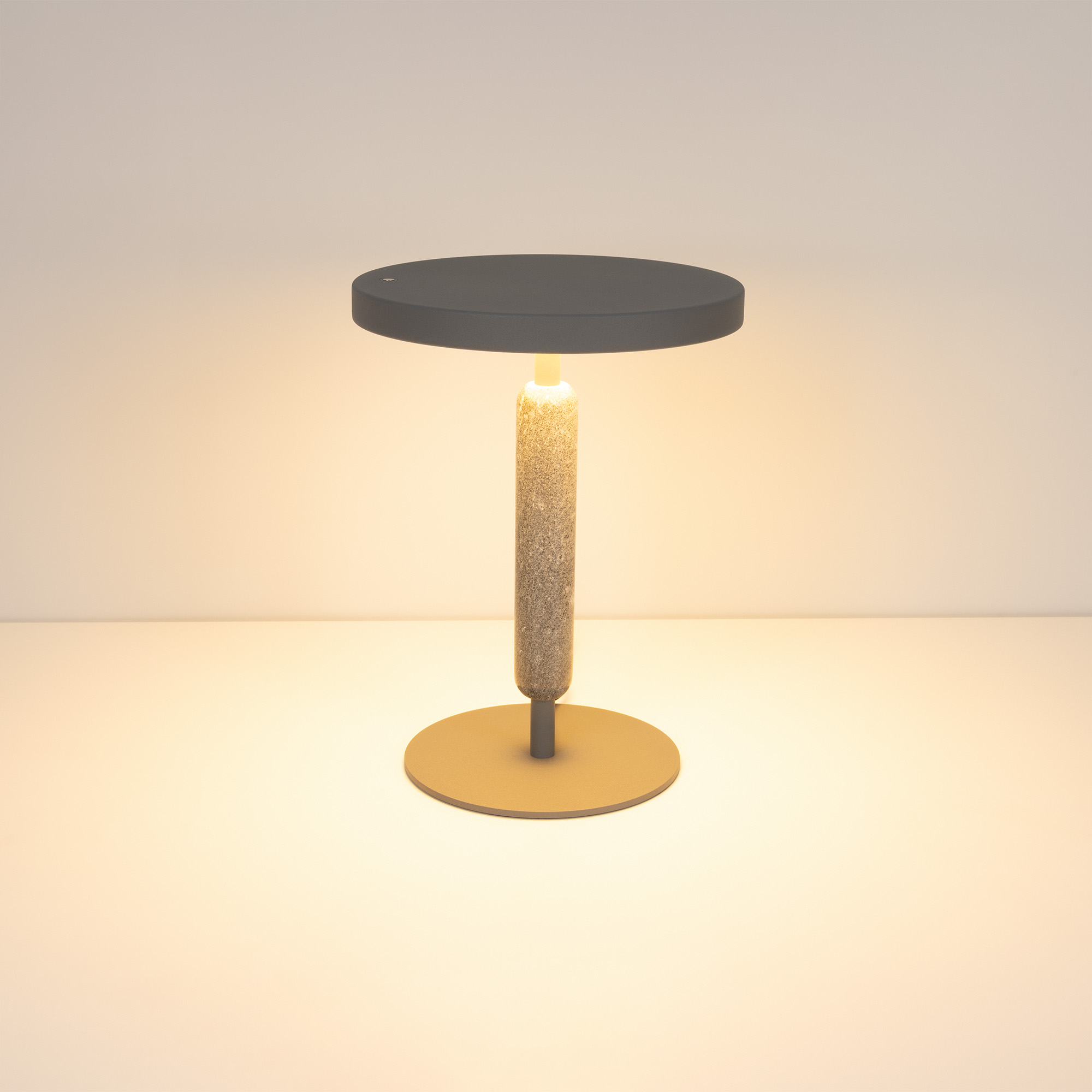 Настольный светильник ALYSS. С изменяемой цветовой температурой 2700/3200/4000К. Цт переключается коротким нажатием на сенсорную кнопку на плафоне, диммирование происходит за счет ее удержания. Мощность 5 Вт, св. поток 195 лм, 39 лм/Вт, CRI>92, угол 110°, напряжение питания 230 В. Темно-серый корпус из алюминия, декоративная вставка из мрамора, степень защиты IP20. Размер: диаметр 225 мм, высота 300 мм. Пульсация <1%.