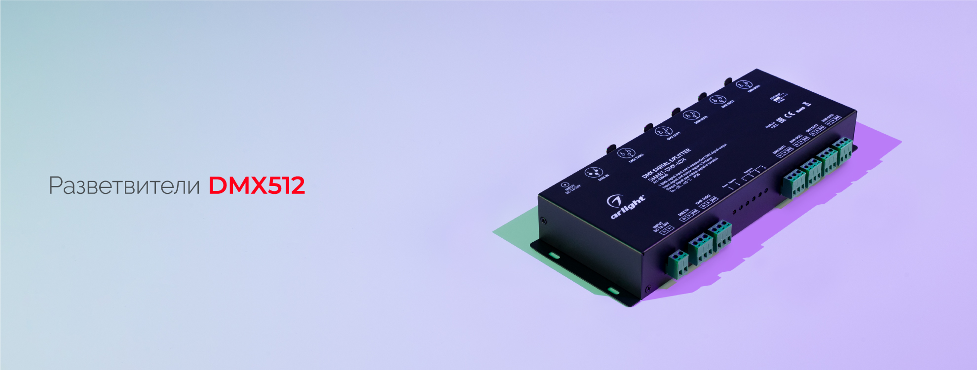 Разветвители предназначены для распределения DMX-сигнала от одного источника на несколько линий и увеличения количества DMX-приемников, подключаемых к одному контроллеру.