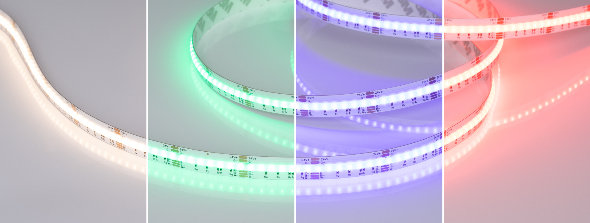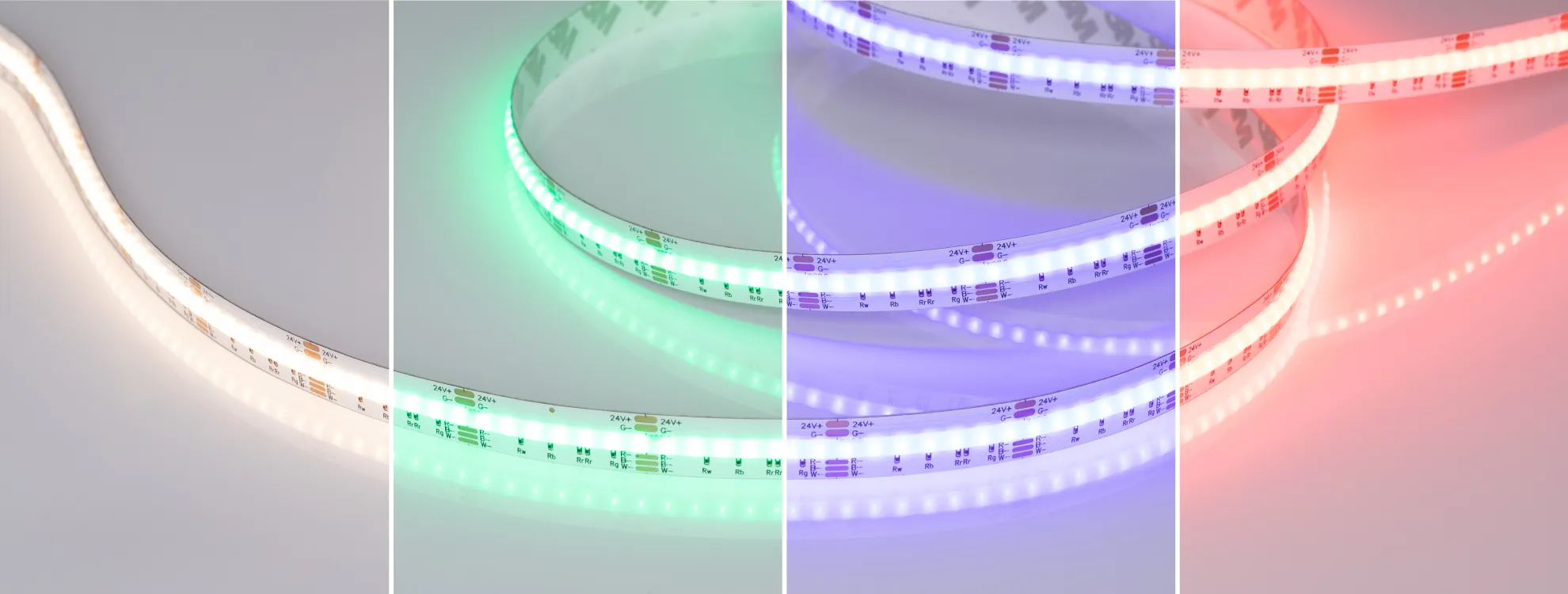 Насыщенные цвета Ленты обладают RGBW-свечением: сочетание белых и RGB-светодиодов позволяет выбрать подходящий оттенок. Свечение белых каналов имеет индекс цветопередачи (CRI>90), который обеспечивает естественное восприятие оттенков в интерьере.