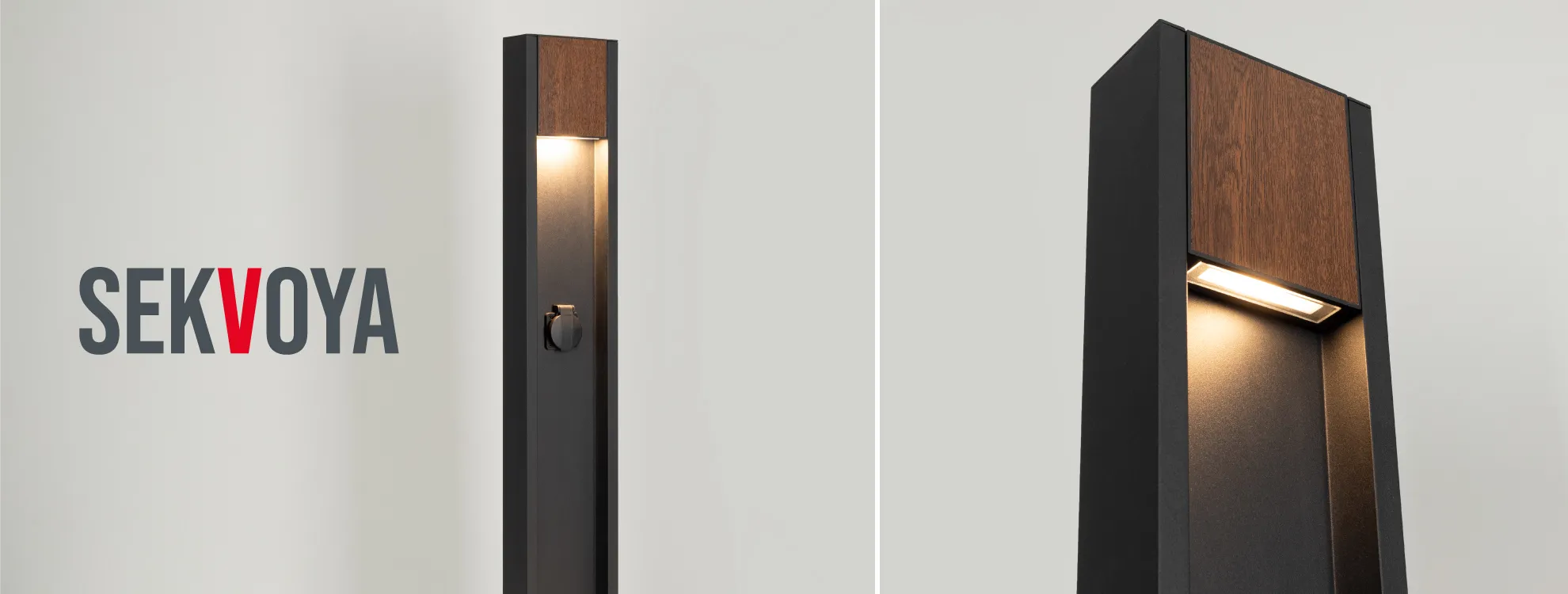Светильник SEKVOYA имеет изысканную декоративную вставку под дерево и гармонично вписывается в природный ландшафт, добавляя пространству стиля и утонченности. Теплый цвет свечения 3000 К деликатно подсвечивает парковые дорожки, придомовые территории, террасы и лужайки, создавая атмосферу уюта для вечернего отдыха или прогулок.
