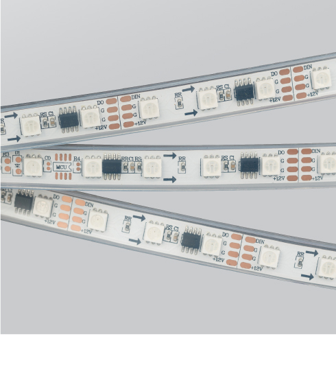 SPI-протокол Возможности SPI-протокола позволят применять ленту как для сложных профессиональных решений, так и для любительских проектов. Пиксели управления представлены в двух вариантах — состоящие из 3 и 6 светодиодов, — что позволяет создавать динамические изображения различной сложности.