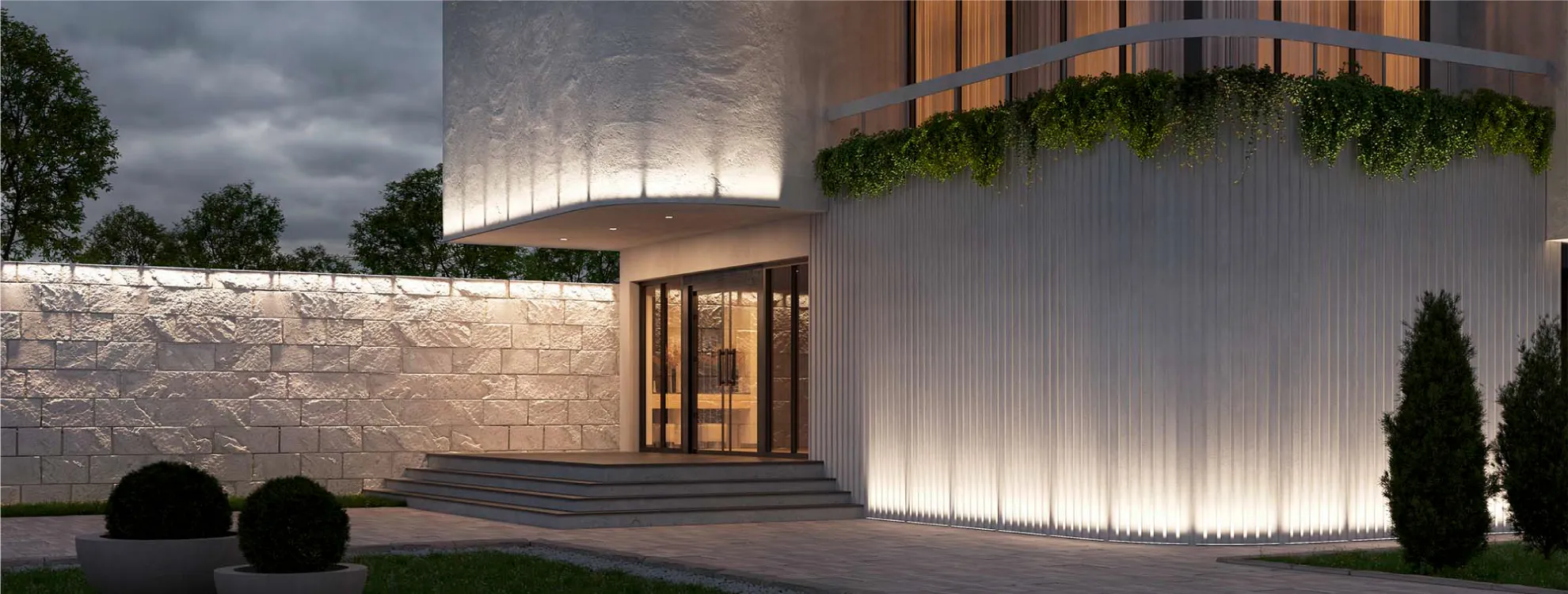Оригинальный световой эффект В отличие от волвошеров, которые равномерно подсвечивают фасад, грейзеры устанавливаются гораздо ближе к поверхности, что позволяет подчеркнуть ее рельеф и создать эффектные тени.