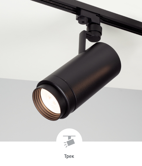 Трековые светильники устанавливаются на однофазную или трехфазную шину, легко перемещаются вдоль трека, вращаются на 360° и отклоняются на 90°, позволяя быстро менять световые акценты в помещениях.
